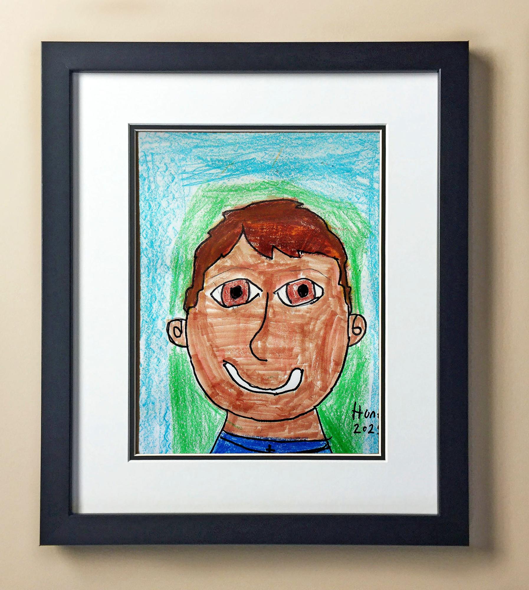 Included with the purchase is the Students Artwork, Frame, double matboard, shatter proof plexiglass, and a ready to hang backerboard with turnbuttons