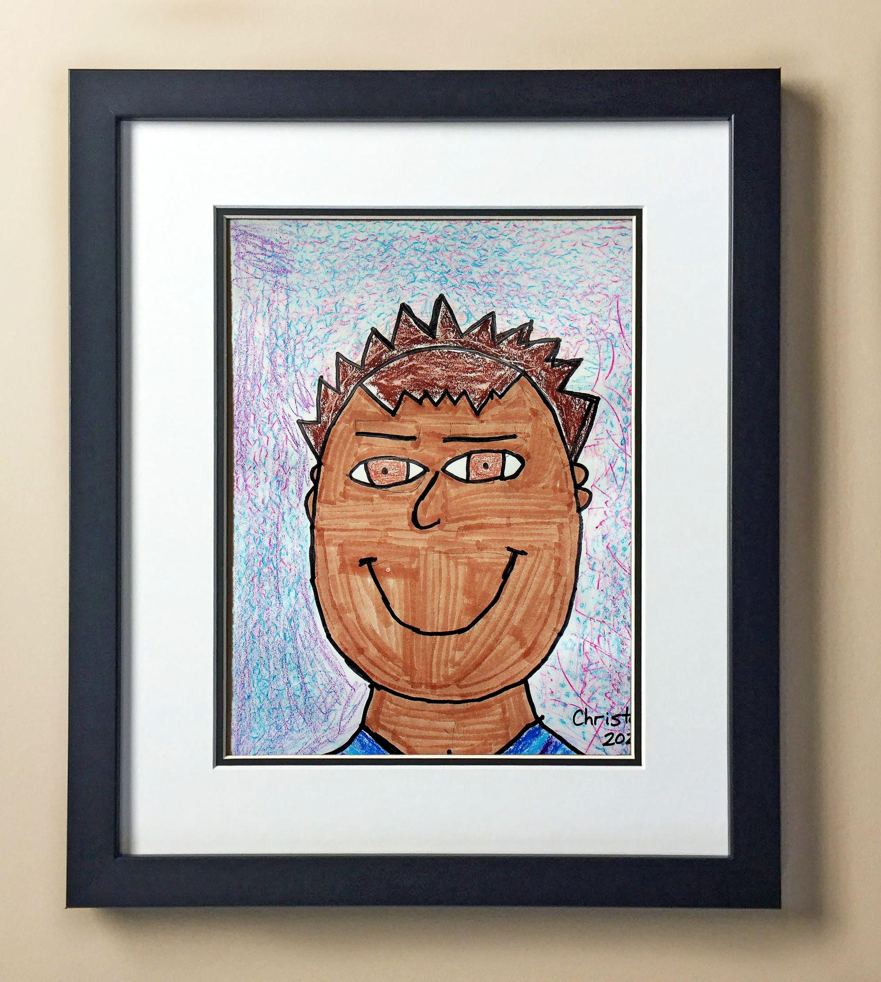 Included with the purchase is the Students Artwork, Frame, double matboard, shatter proof plexiglass, and a ready to hang backerboard with turnbuttons