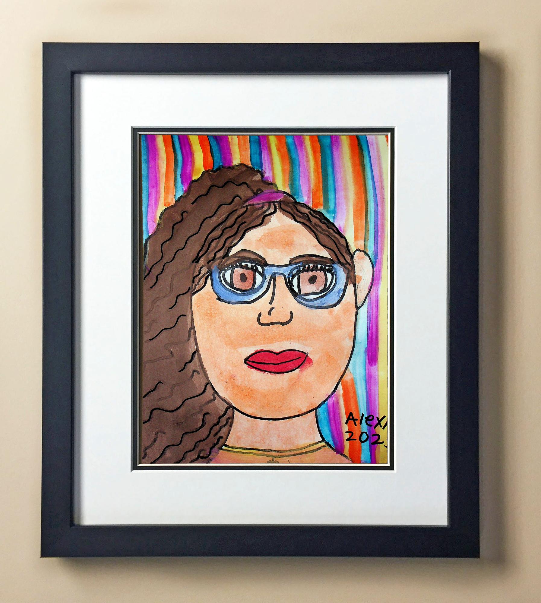 Included with the purchase is the Students Artwork, Frame, double matboard, shatter proof plexiglass, and a ready to hang backerboard with turnbuttons
