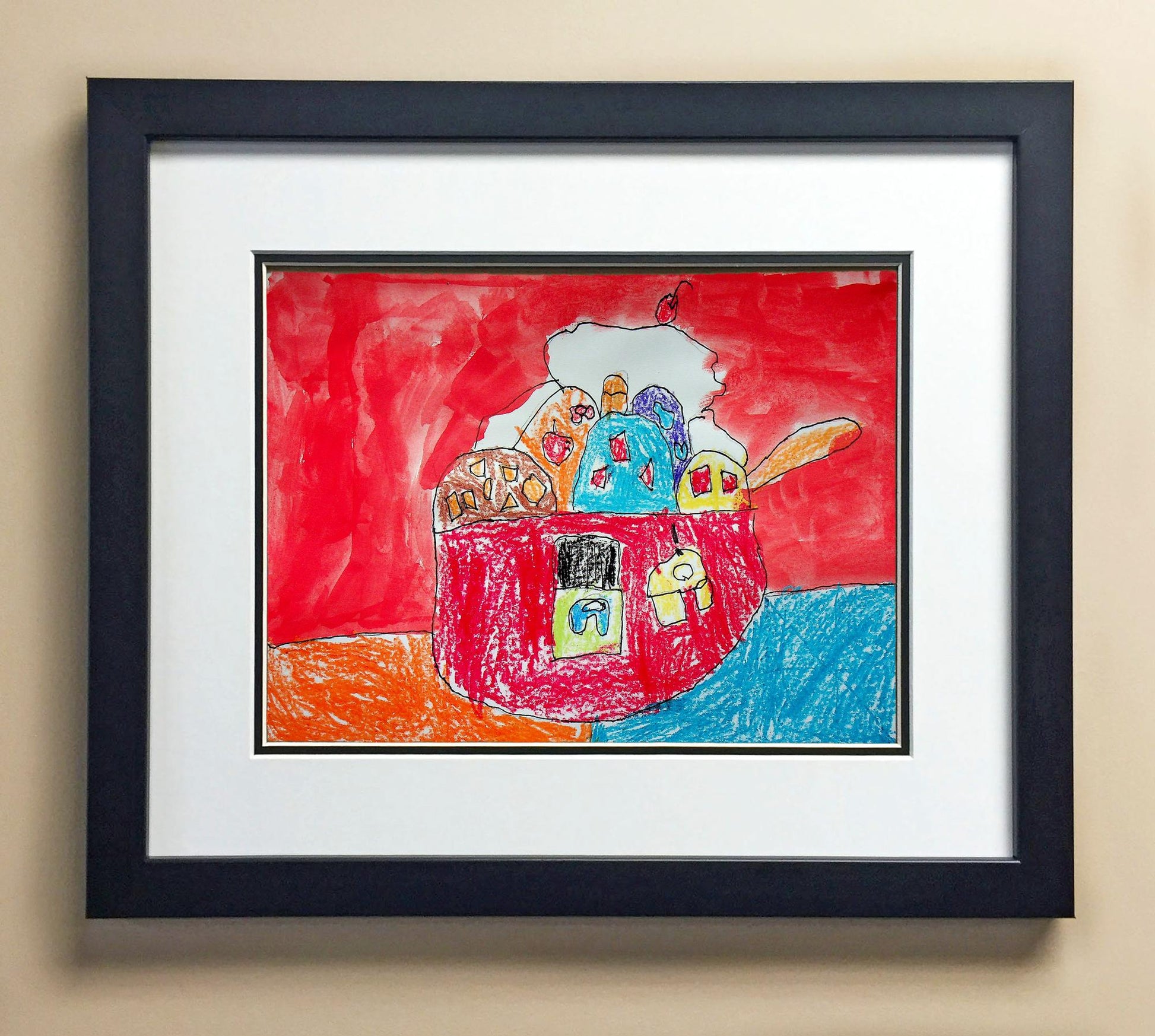 Included with the purchase is the Students Artwork, Frame, double matboard, shatter proof plexiglass, and a ready to hang backerboard with turnbuttons