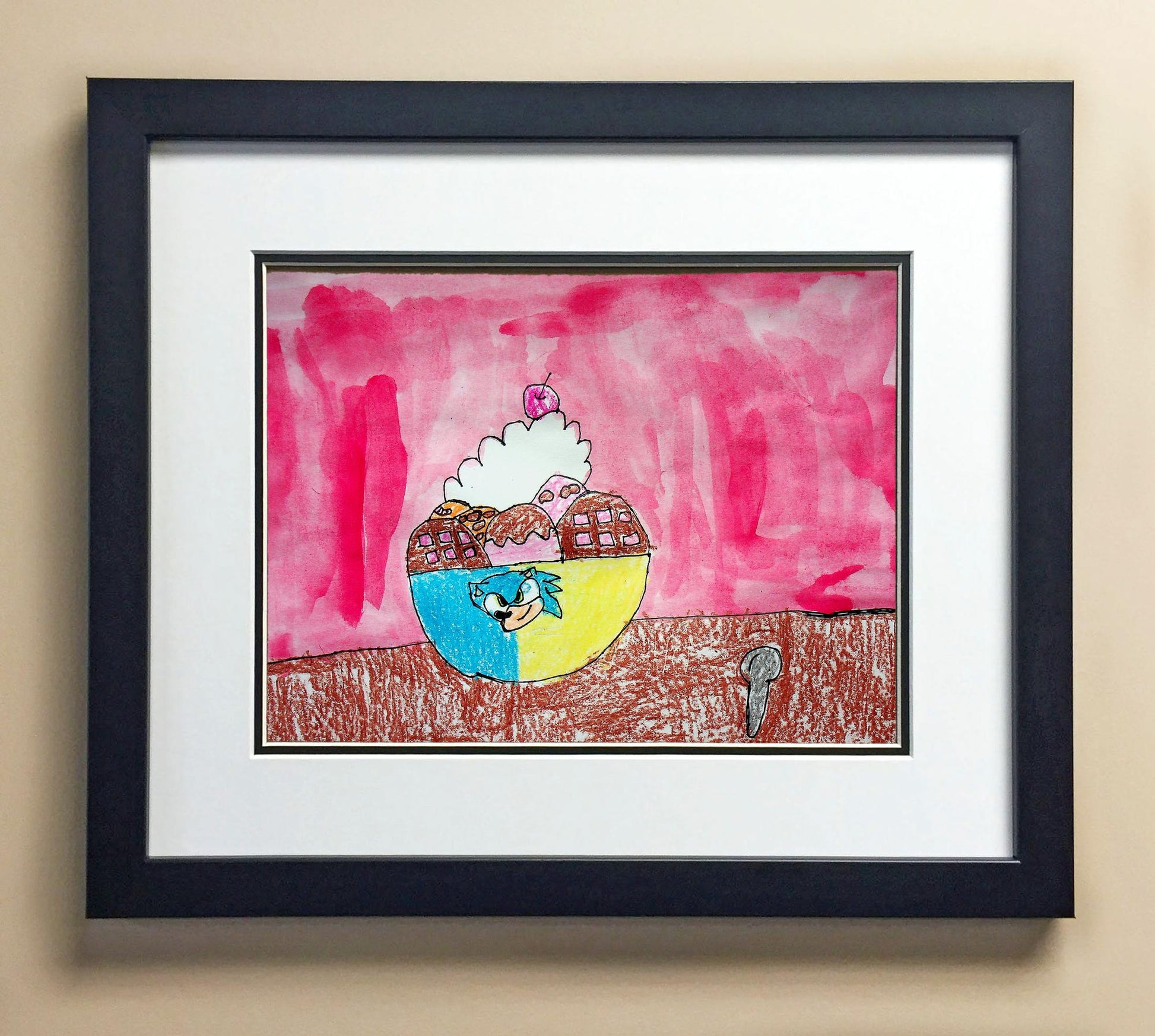 Included with the purchase is the Students Artwork, Frame, double matboard, shatter proof plexiglass, and a ready to hang backerboard with turnbuttons
