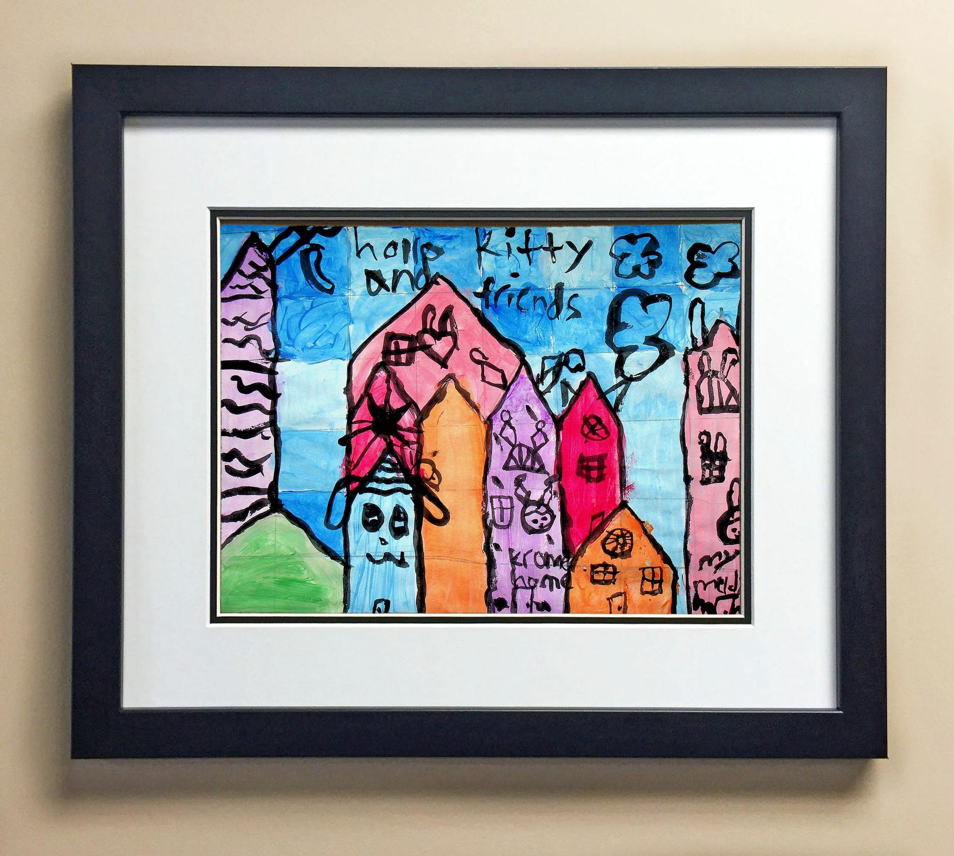 Included with the purchase is the Students Artwork, Frame, double matboard, shatter proof plexiglass, and a ready to hang backerboard with turnbuttons