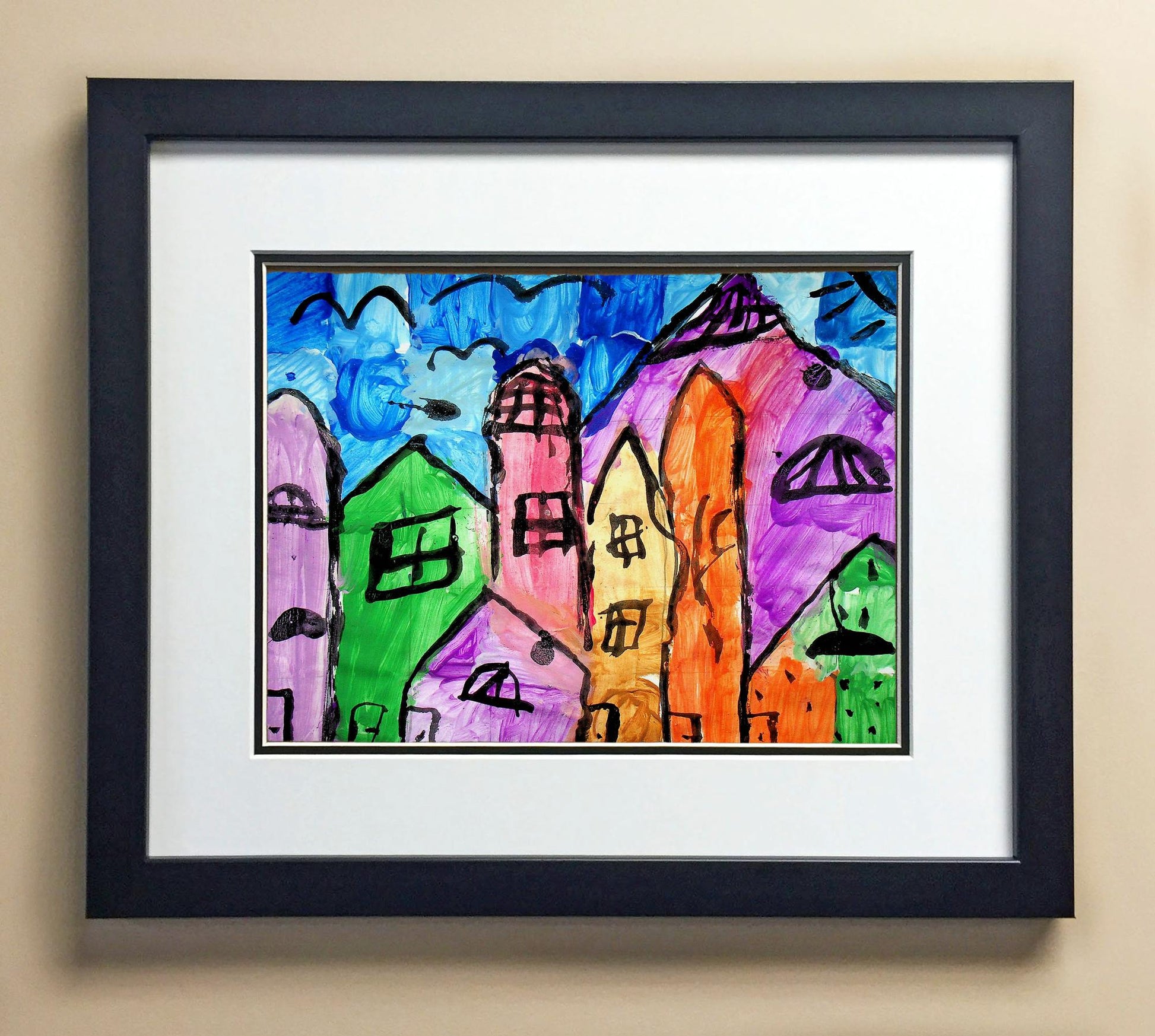 Included with the purchase is the Students Artwork, Frame, double matboard, shatter proof plexiglass, and a ready to hang backerboard with turnbuttons
