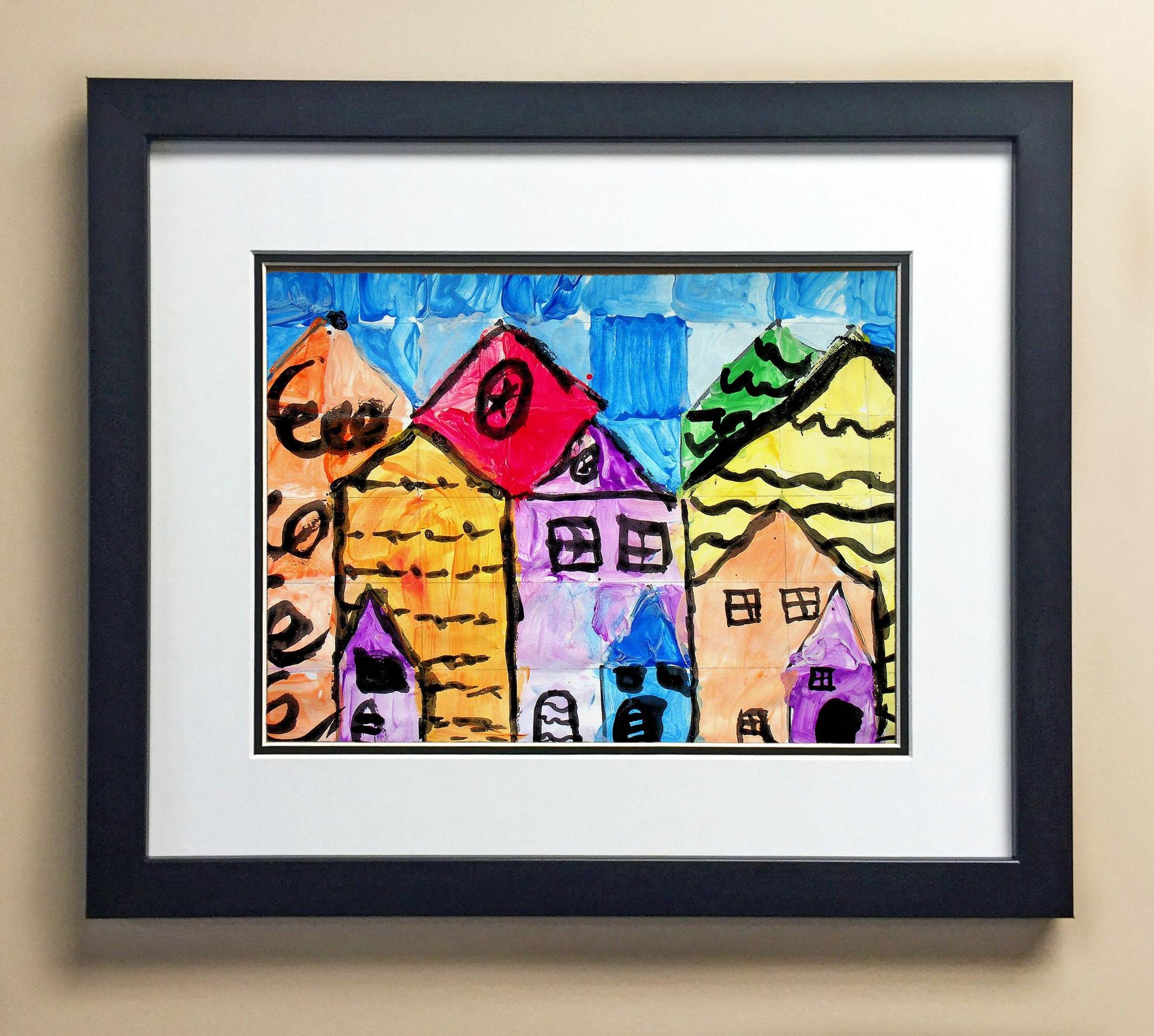 Included with the purchase is the Students Artwork, Frame, double matboard, shatter proof plexiglass, and a ready to hang backerboard with turnbuttons