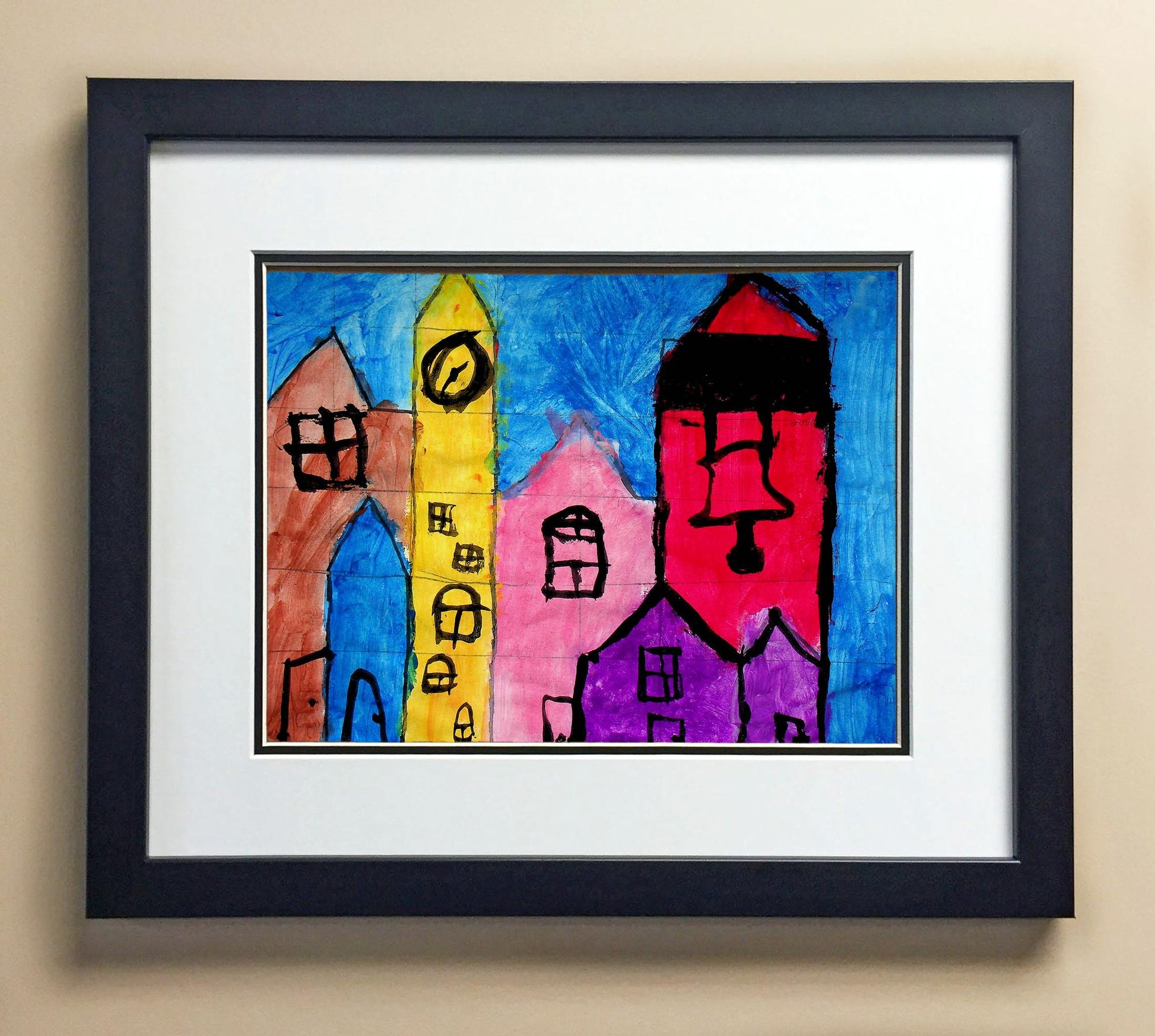 Included with the purchase is the Students Artwork, Frame, double matboard, shatter proof plexiglass, and a ready to hang backerboard with turnbuttons