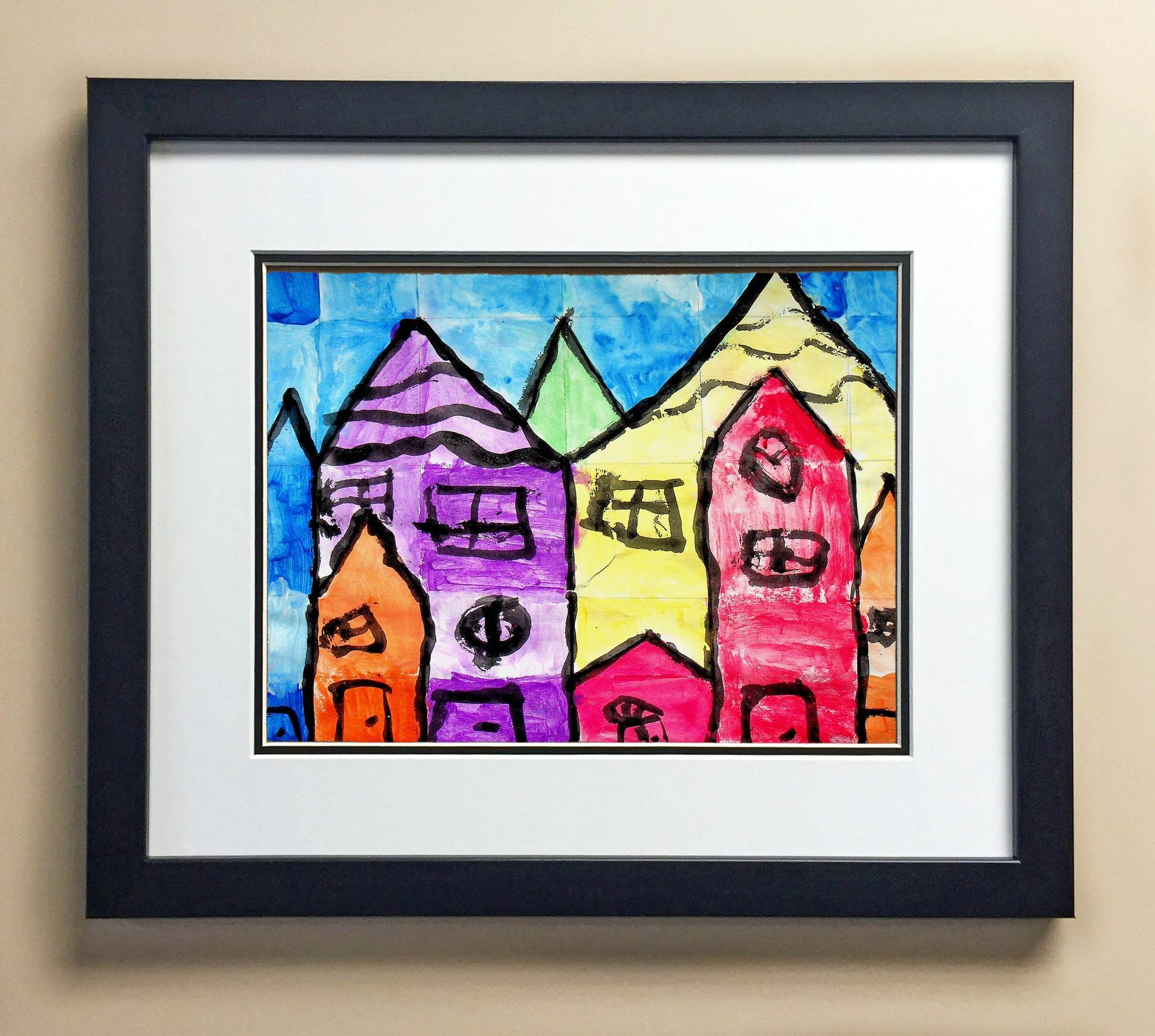 Included with the purchase is the Students Artwork, Frame, double matboard, shatter proof plexiglass, and a ready to hang backerboard with turnbuttons
