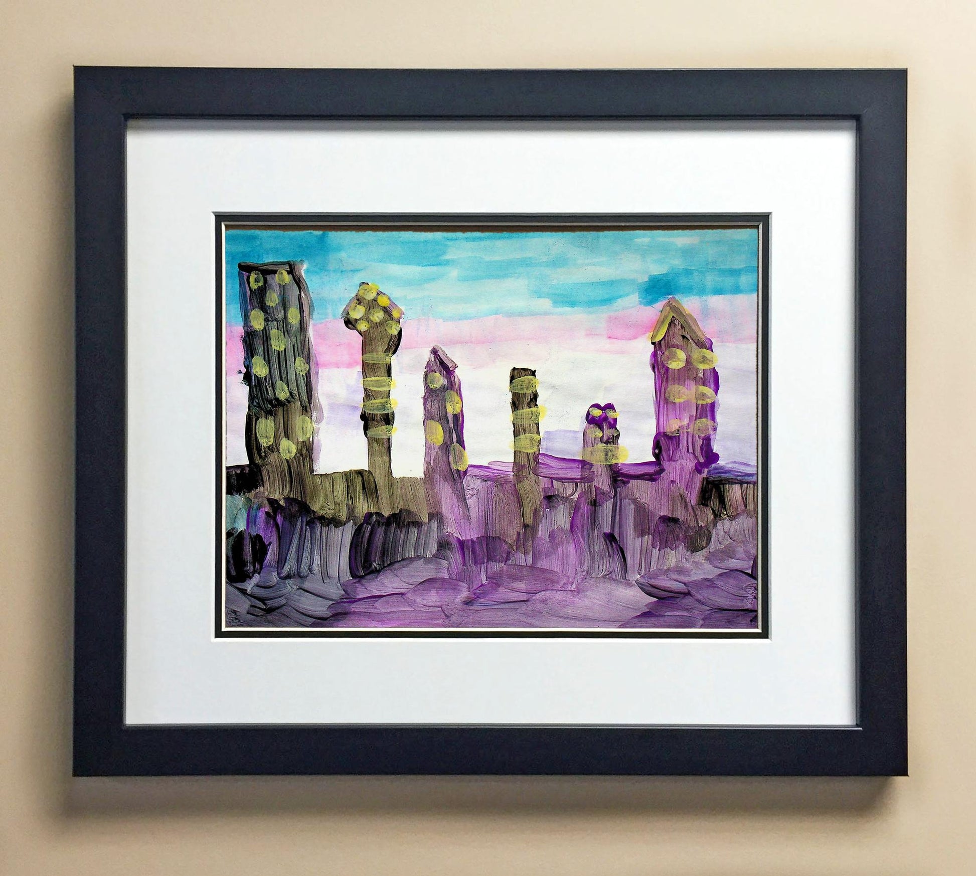 Included with the purchase is the Students Artwork, Frame, double matboard, shatter proof plexiglass, and a ready to hang backerboard with turnbuttons