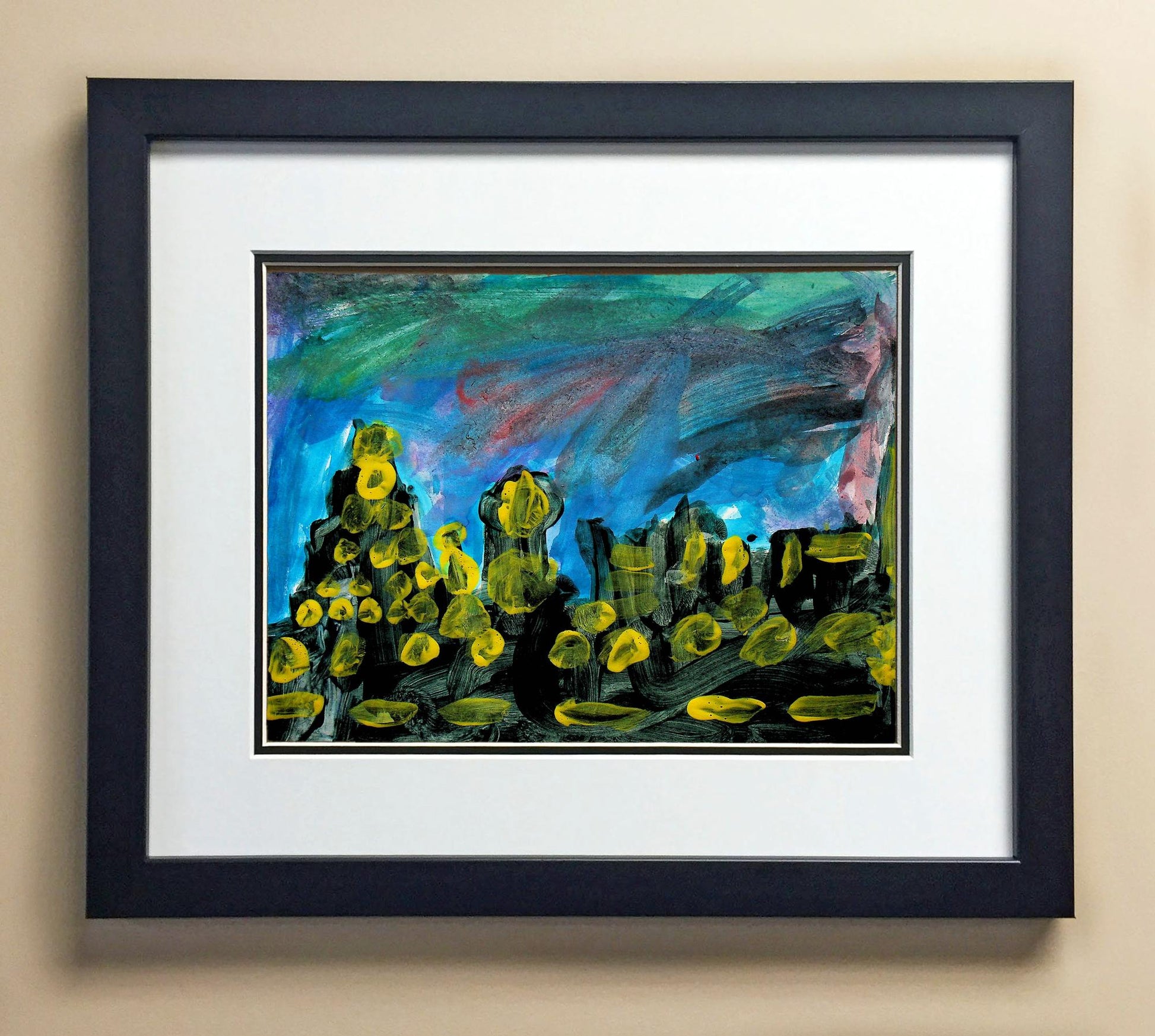 Included with the purchase is the Students Artwork, Frame, double matboard, shatter proof plexiglass, and a ready to hang backerboard with turnbuttons