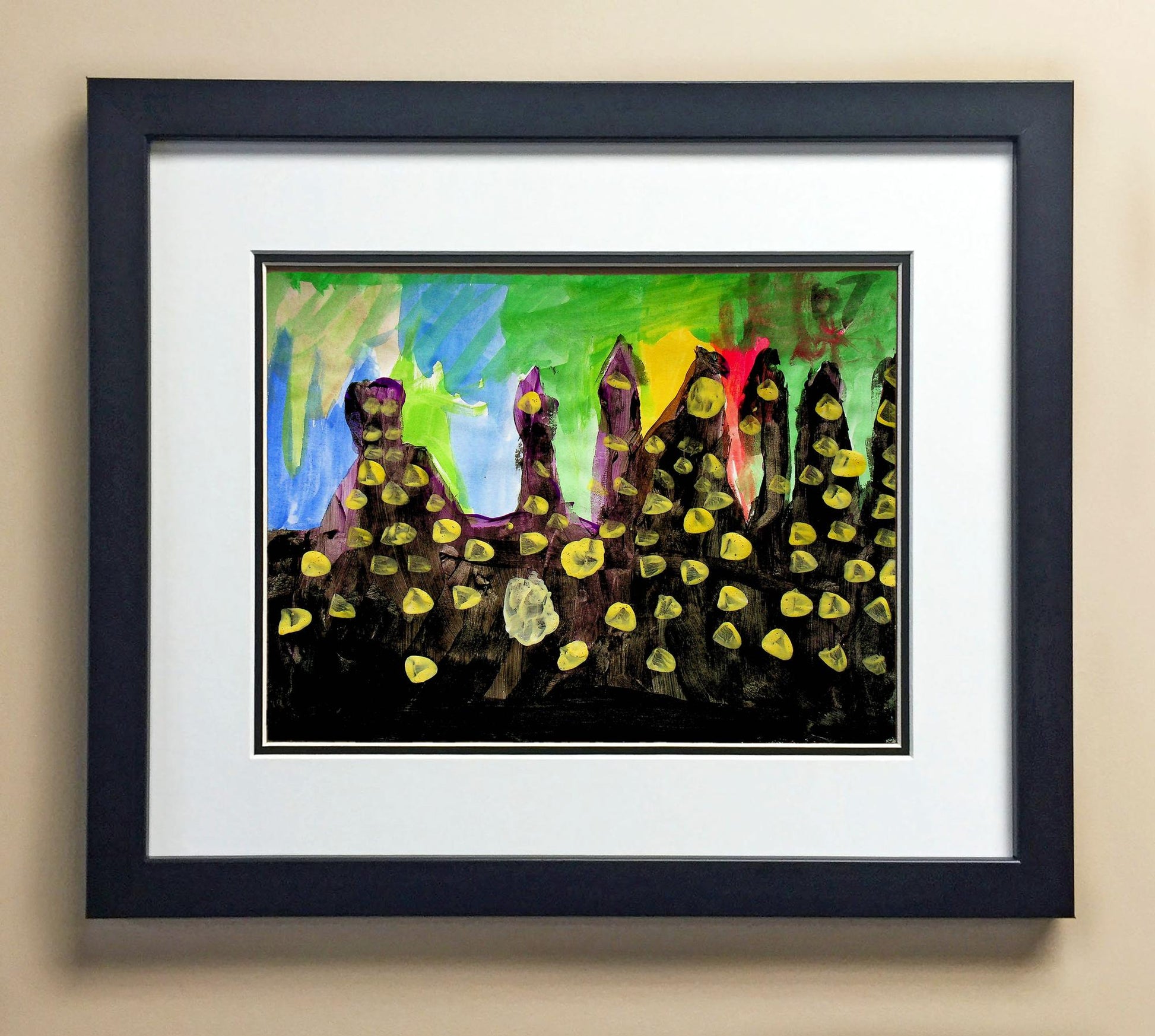 Included with the purchase is the Students Artwork, Frame, double matboard, shatter proof plexiglass, and a ready to hang backerboard with turnbuttons