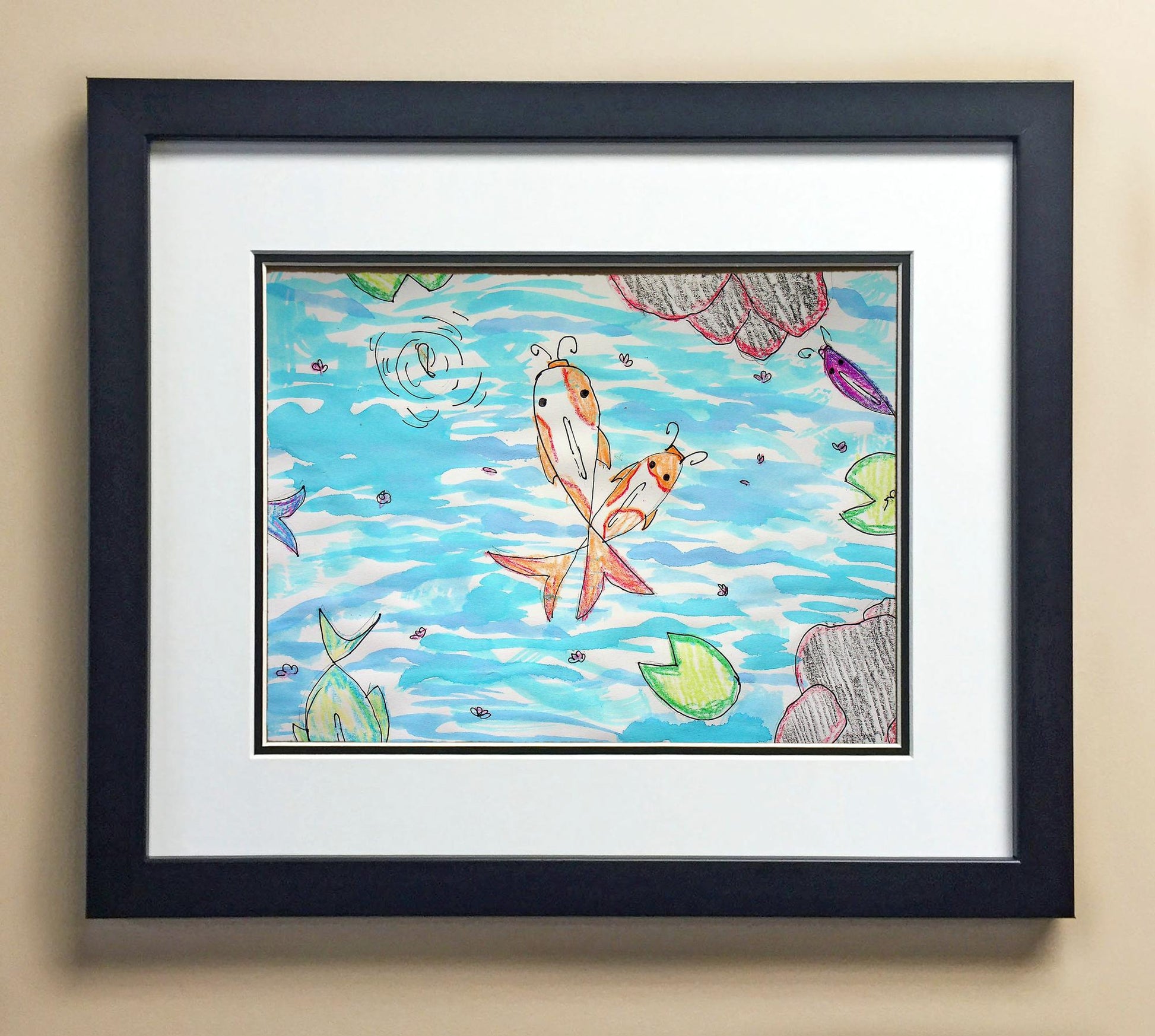 Included with the purchase is the Students Artwork, Frame, double matboard, shatter proof plexiglass, and a ready to hang backerboard with turnbuttons