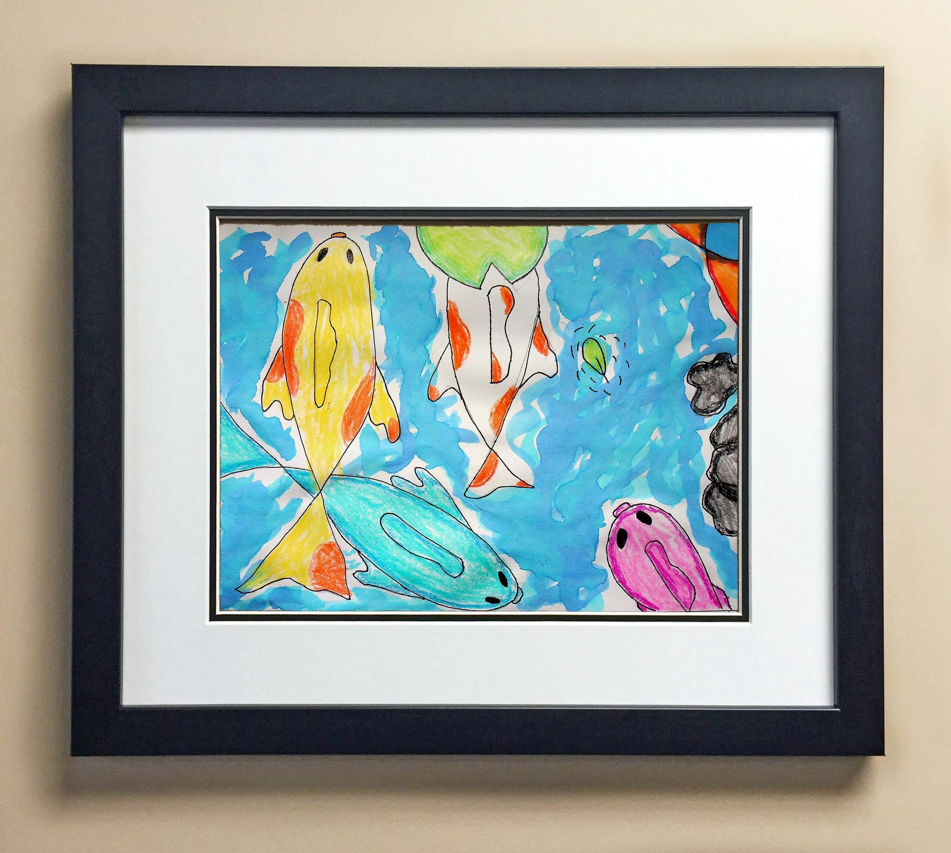 Included with the purchase is the Students Artwork, Frame, double matboard, shatter proof plexiglass, and a ready to hang backerboard with turnbuttons