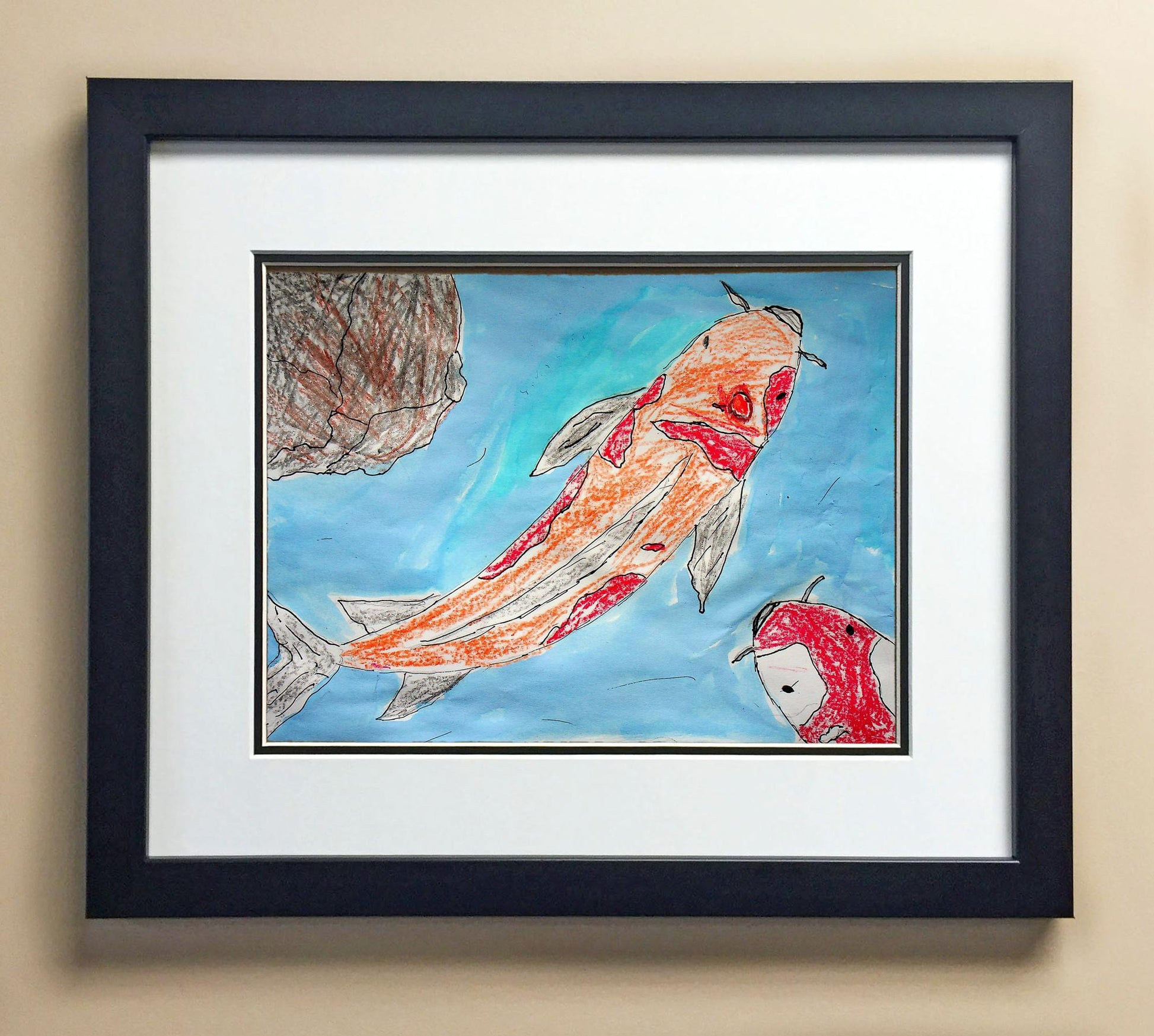 Included with the purchase is the Students Artwork, Frame, double matboard, shatter proof plexiglass, and a ready to hang backerboard with turnbuttons