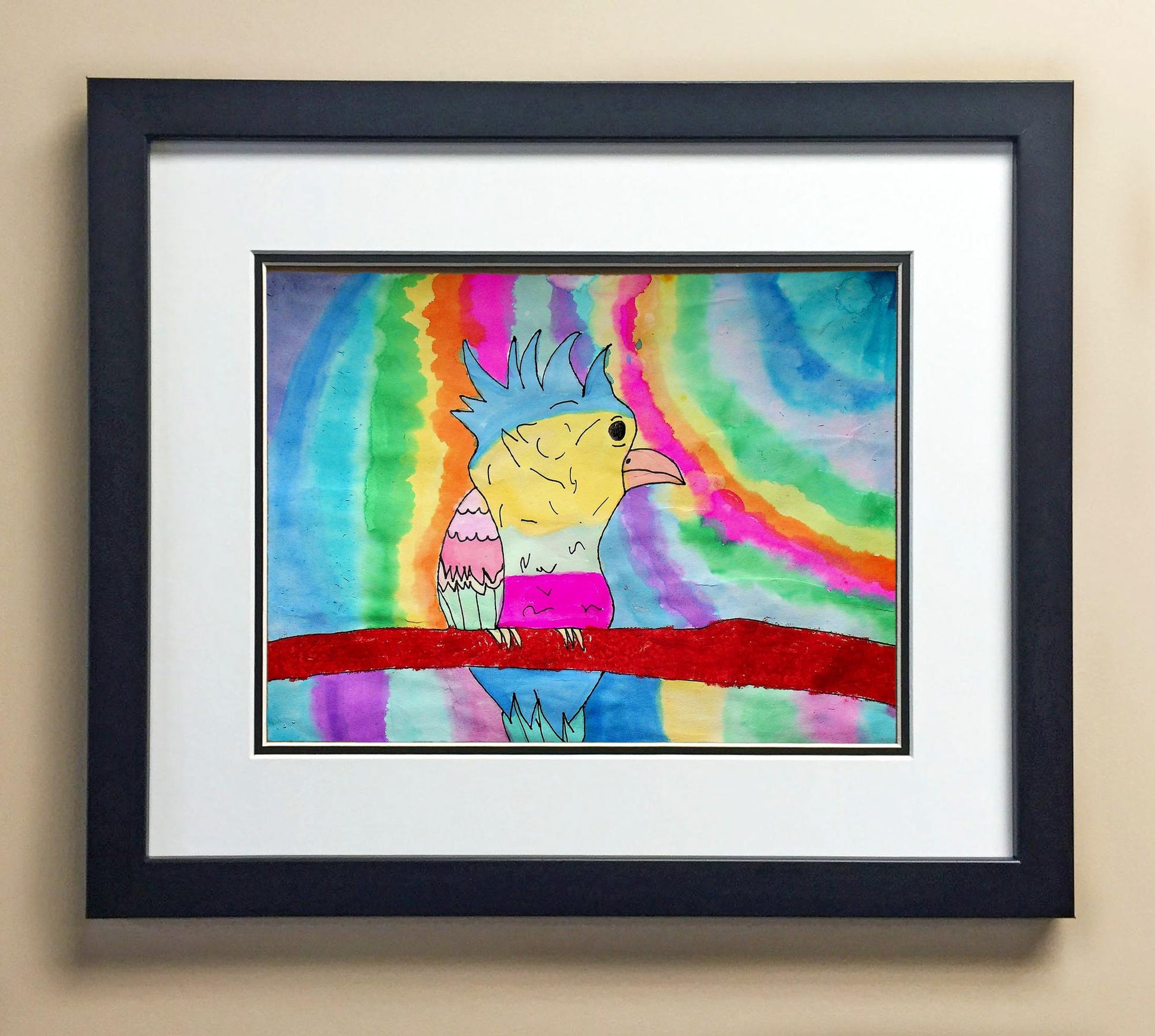 Included with the purchase is the Students Artwork, Frame, double matboard, shatter proof plexiglass, and a ready to hang backerboard with turnbuttons