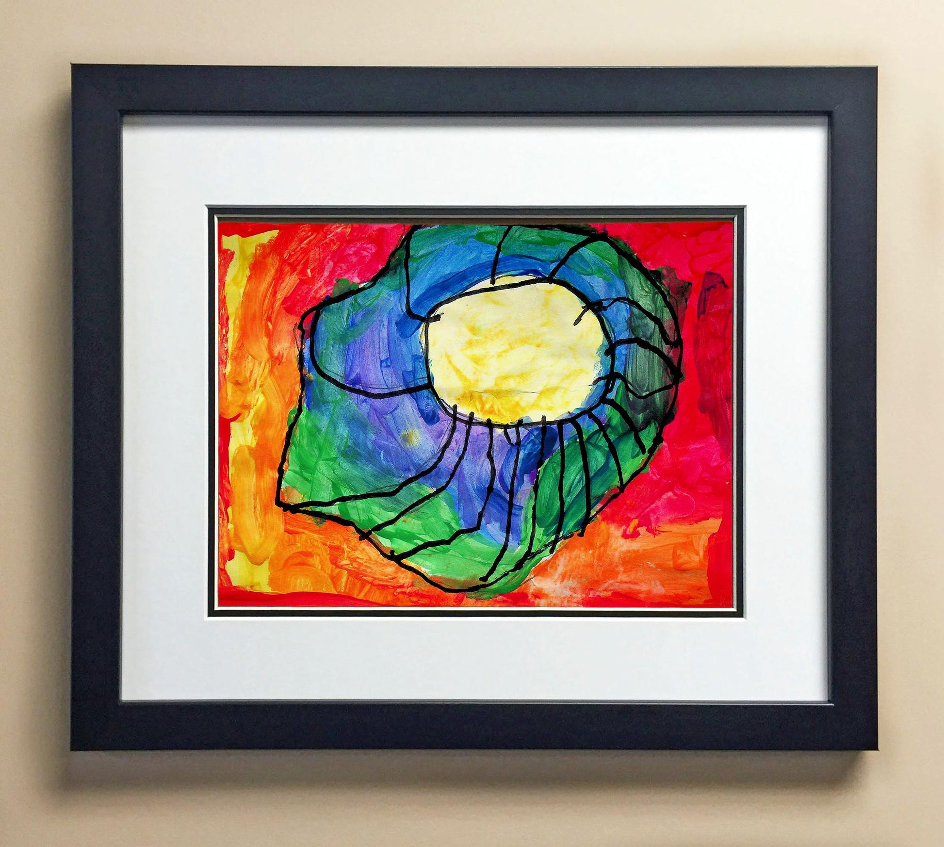 Included with the purchase is the Students Artwork, Frame, double matboard, shatter proof plexiglass, and a ready to hang backerboard with turnbuttons