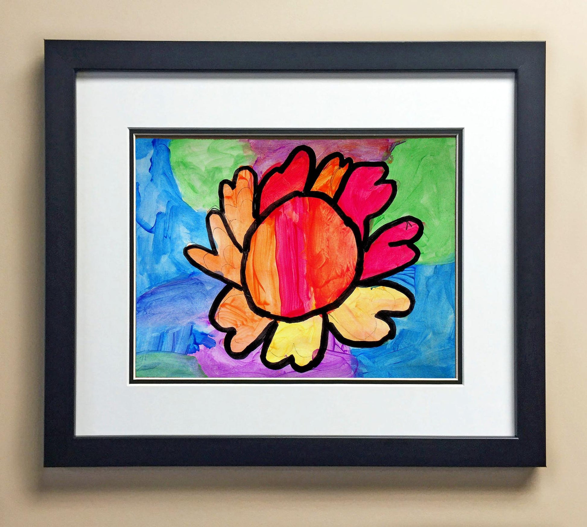 Included with the purchase is the Students Artwork, Frame, double matboard, shatter proof plexiglass, and a ready to hang backerboard with turnbuttons