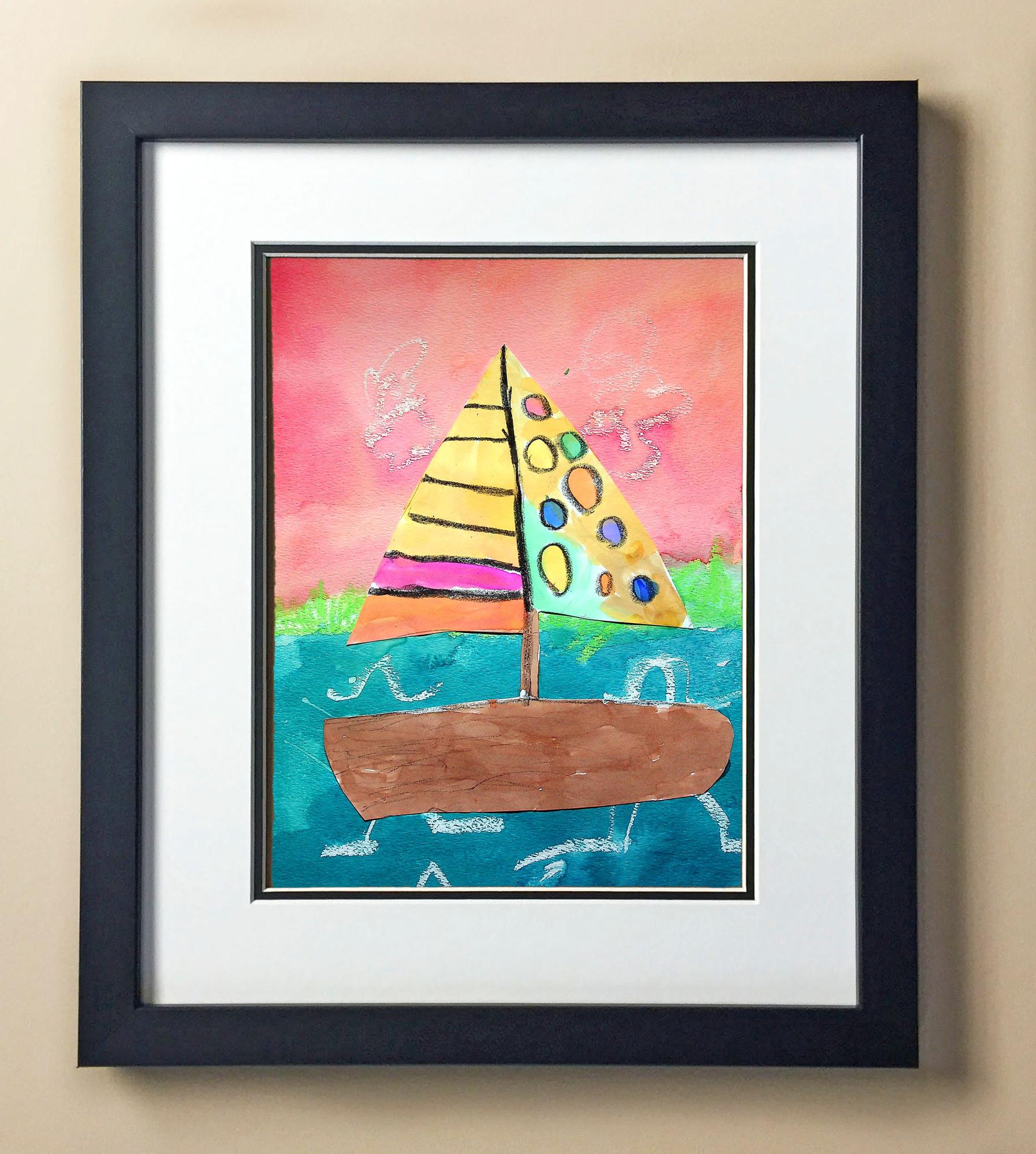 Included with the purchase is the Students Artwork, Frame, double matboard, shatter proof plexiglass, and a ready to hang backerboard with turnbuttons