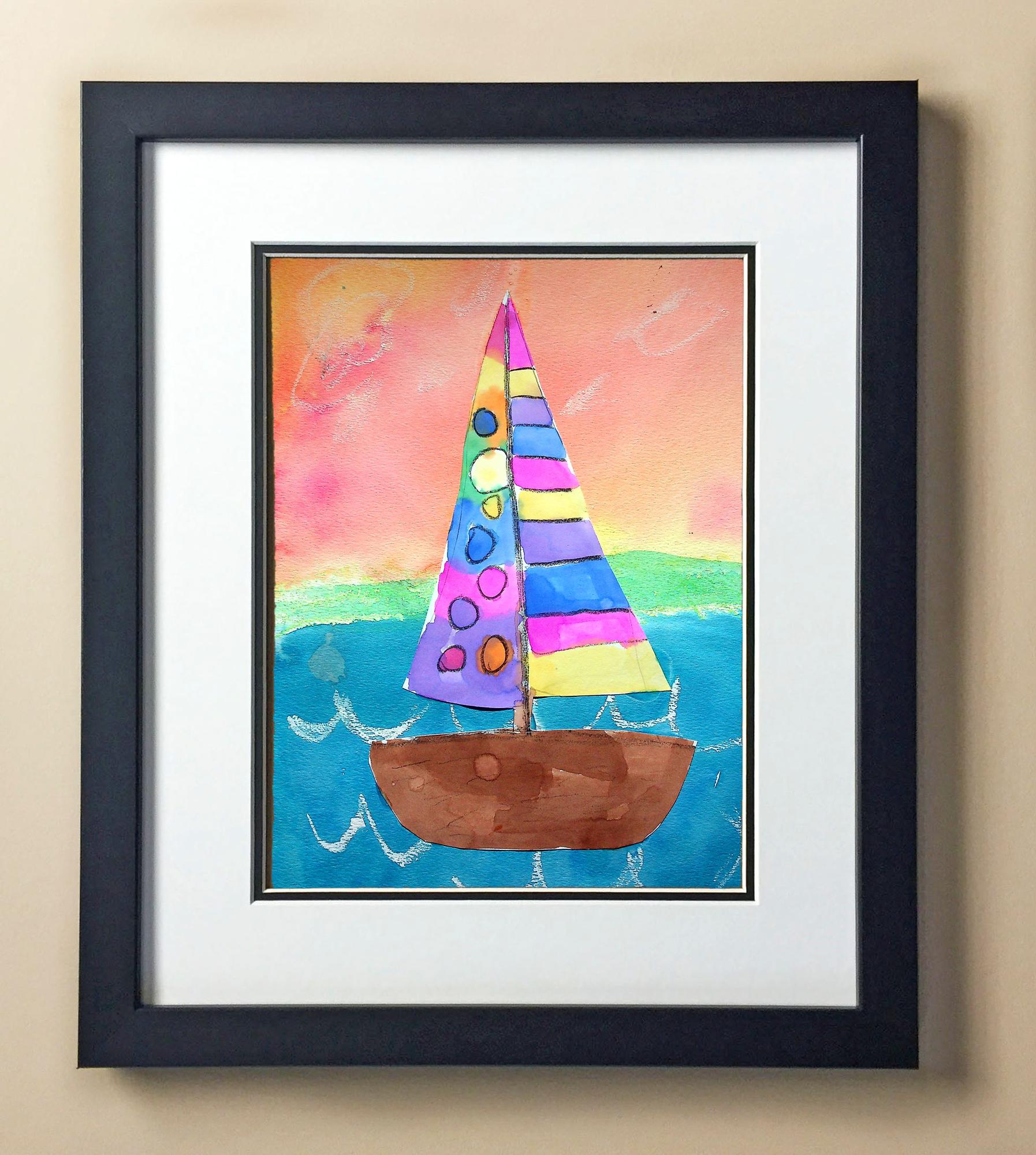 Included with the purchase is the Students Artwork, Frame, double matboard, shatter proof plexiglass, and a ready to hang backerboard with turnbuttons