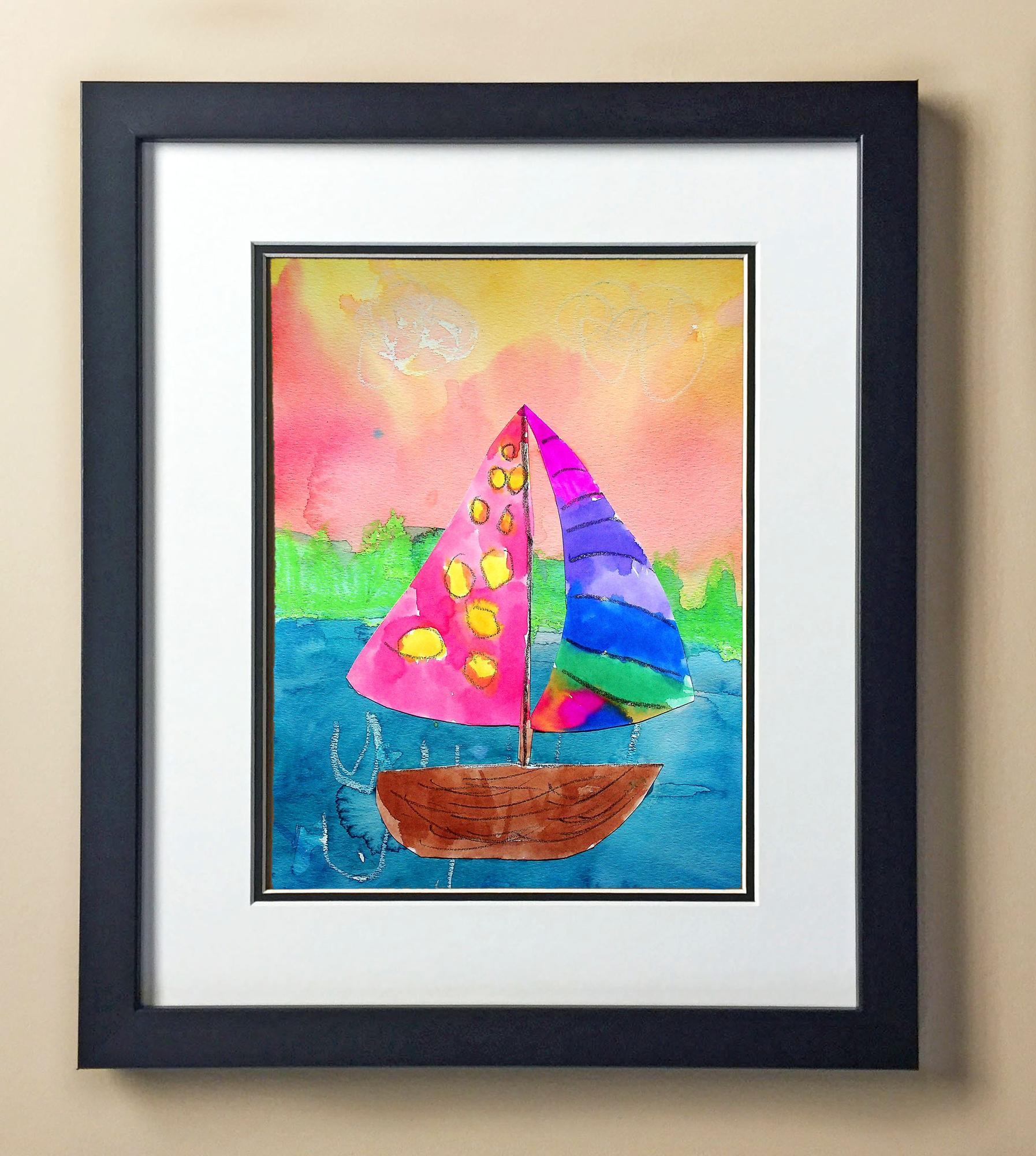 Included with the purchase is the Students Artwork, Frame, double matboard, shatter proof plexiglass, and a ready to hang backerboard with turnbuttons