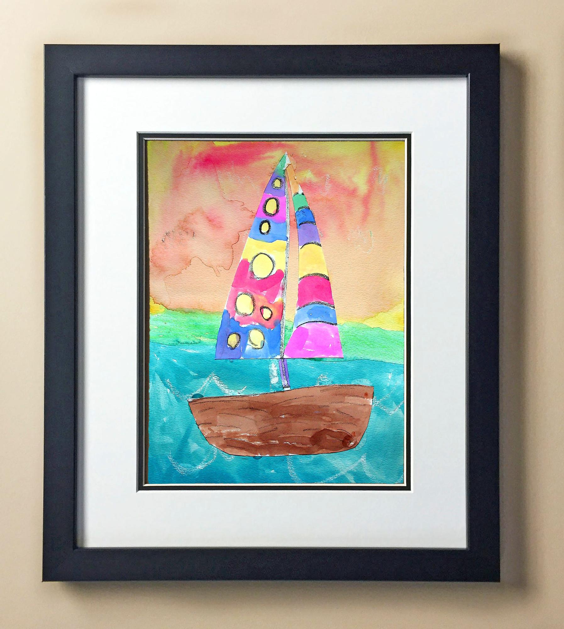 Included with the purchase is the Students Artwork, Frame, double matboard, shatter proof plexiglass, and a ready to hang backerboard with turnbuttons