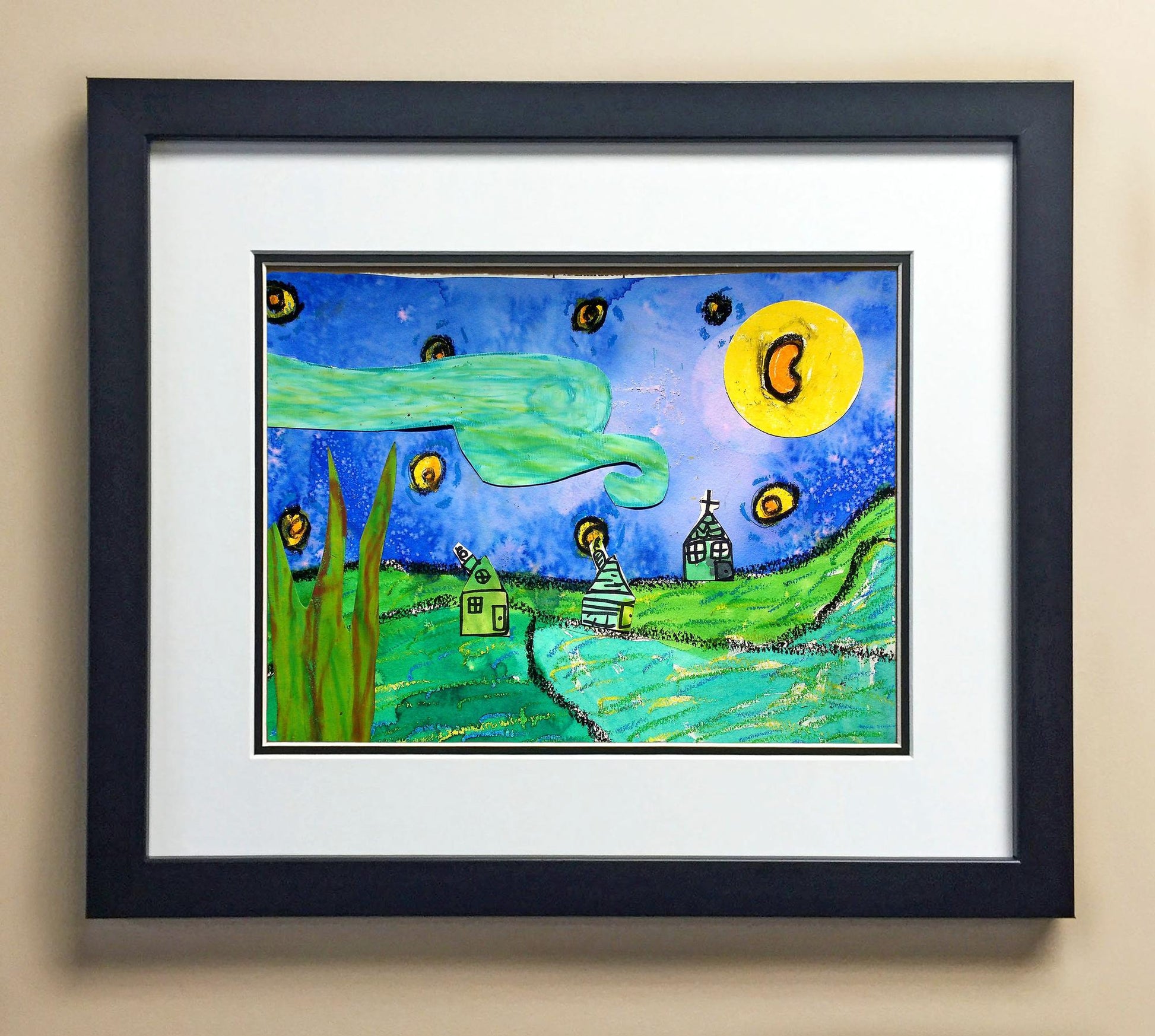 Included with the purchase is the Students Artwork, Frame, double matboard, shatter proof plexiglass, and a ready to hang backerboard with turnbuttons