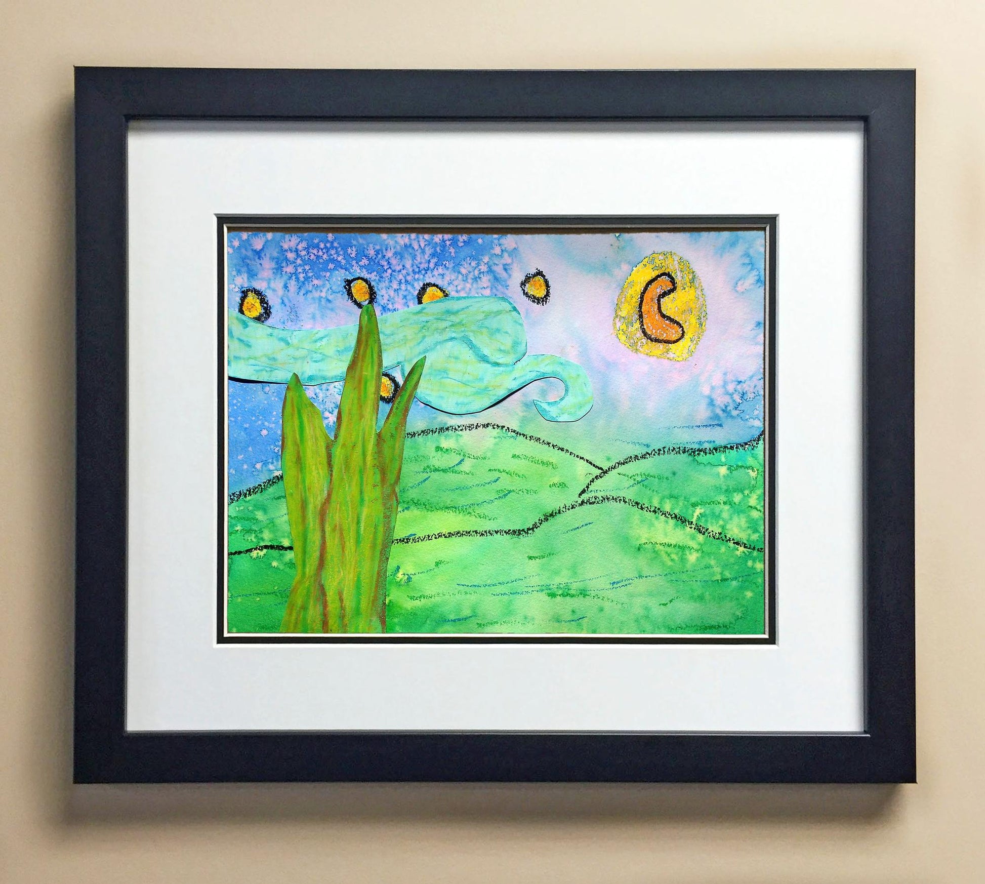 Included with the purchase is the Students Artwork, Frame, double matboard, shatter proof plexiglass, and a ready to hang backerboard with turnbuttons