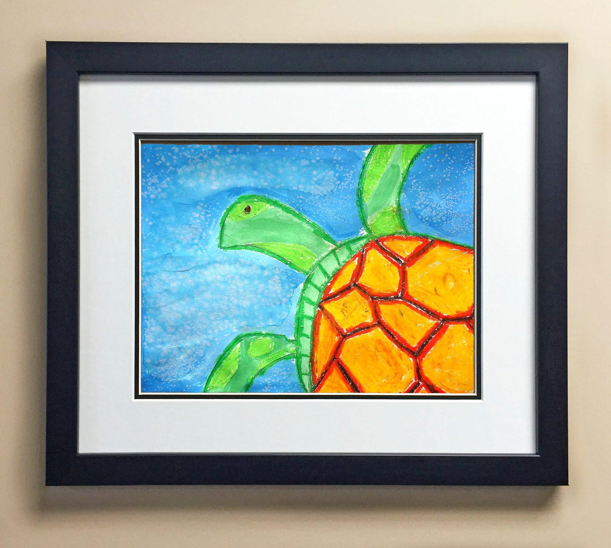 Included with the purchase is the Students Artwork, Frame, double matboard, shatter proof plexiglass, and a ready to hang backerboard with turnbuttons