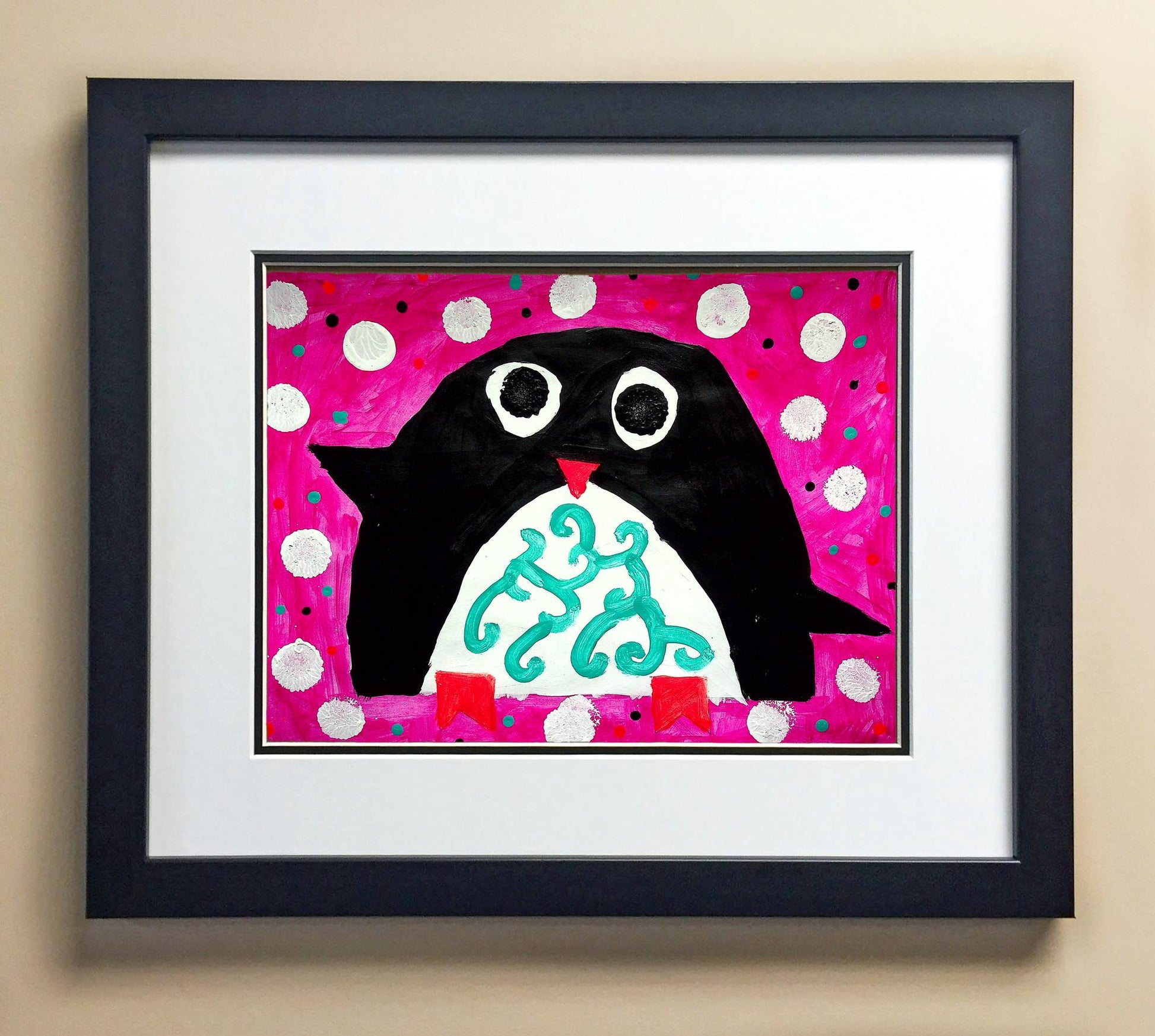 Included with the purchase is the Students Artwork, Frame, double matboard, shatter proof plexiglass, and a ready to hang backerboard with turnbuttons