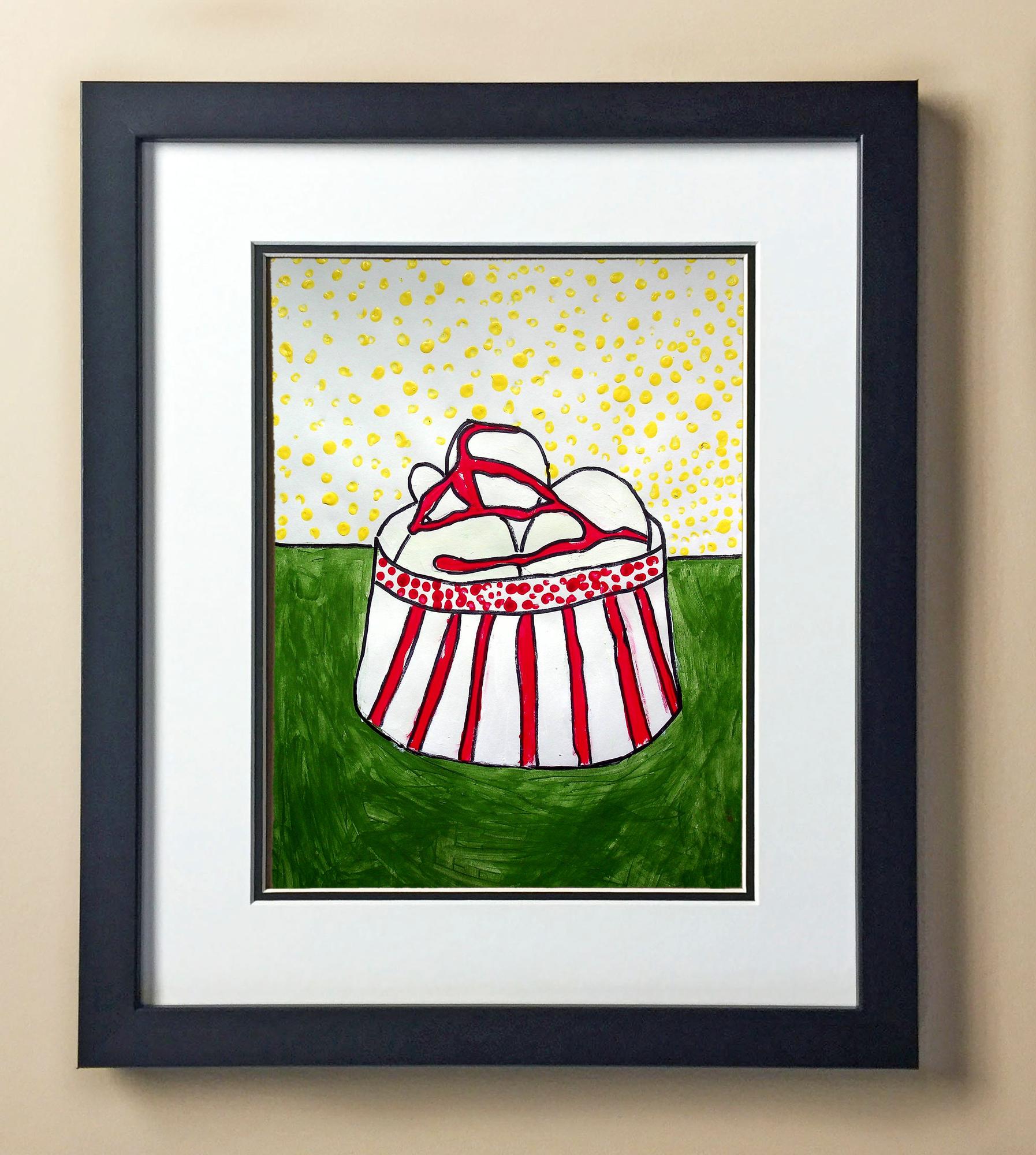 Included with the purchase is the Students Artwork, Frame, double matboard, shatter proof plexiglass, and a ready to hang backerboard with turnbuttons