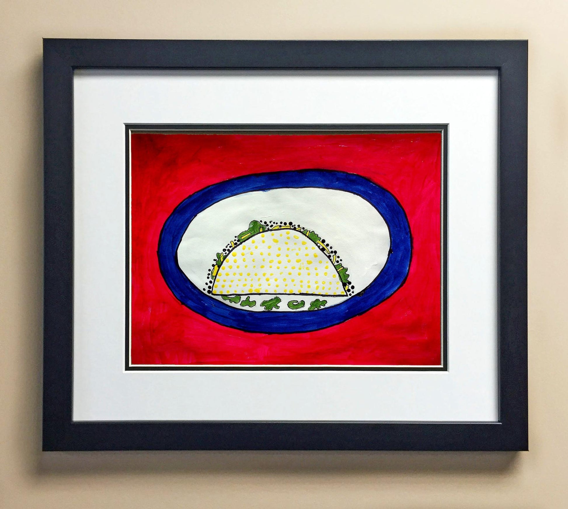 Included with the purchase is the Students Artwork, Frame, double matboard, shatter proof plexiglass, and a ready to hang backerboard with turnbuttons