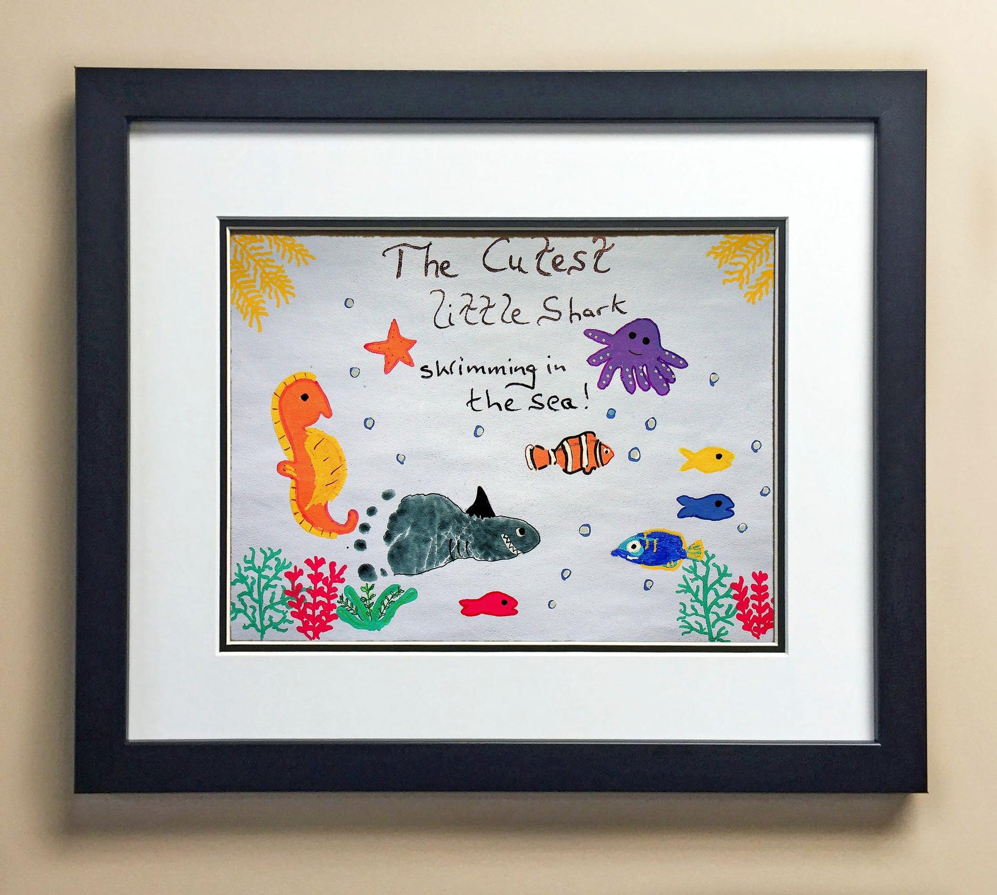 Included with the purchase is the Students Artwork, Frame, double matboard, shatter proof plexiglass, and a ready to hang backerboard with turnbuttons