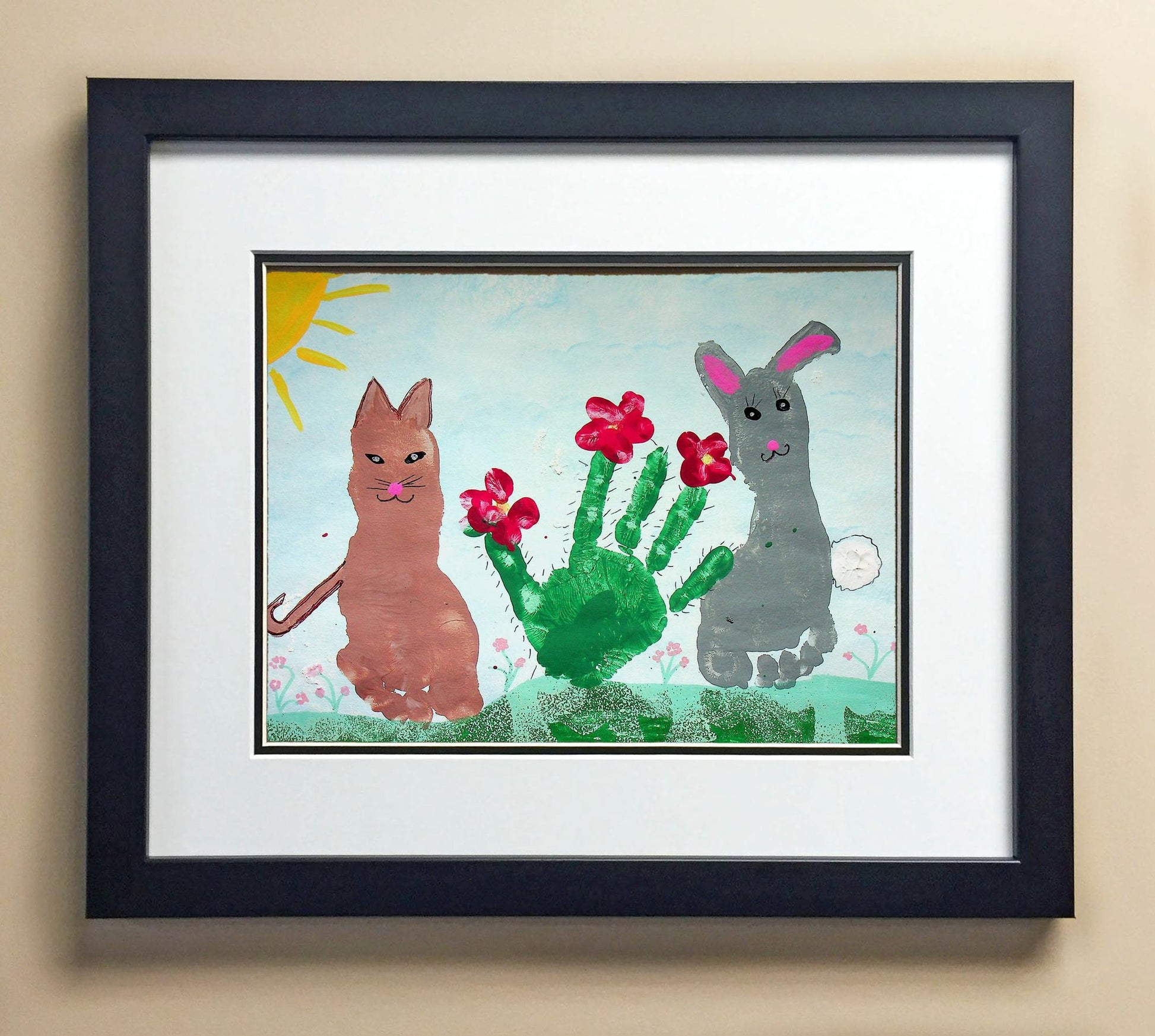 Included with the purchase is the Students Artwork, Frame, double matboard, shatter proof plexiglass, and a ready to hang backerboard with turnbuttons