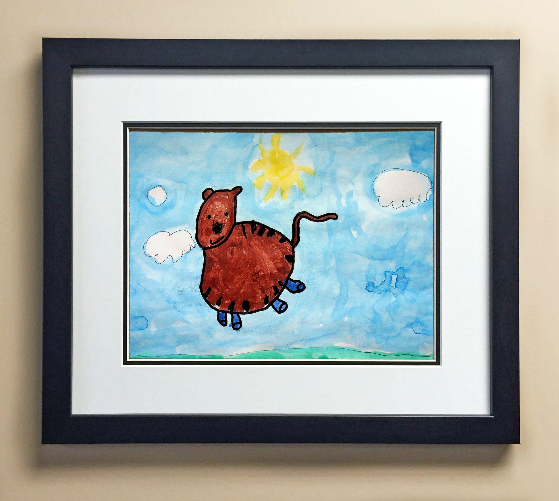 Included with the purchase is the Students Artwork, Frame, double matboard, shatter proof plexiglass, and a ready to hang backerboard with turnbuttons