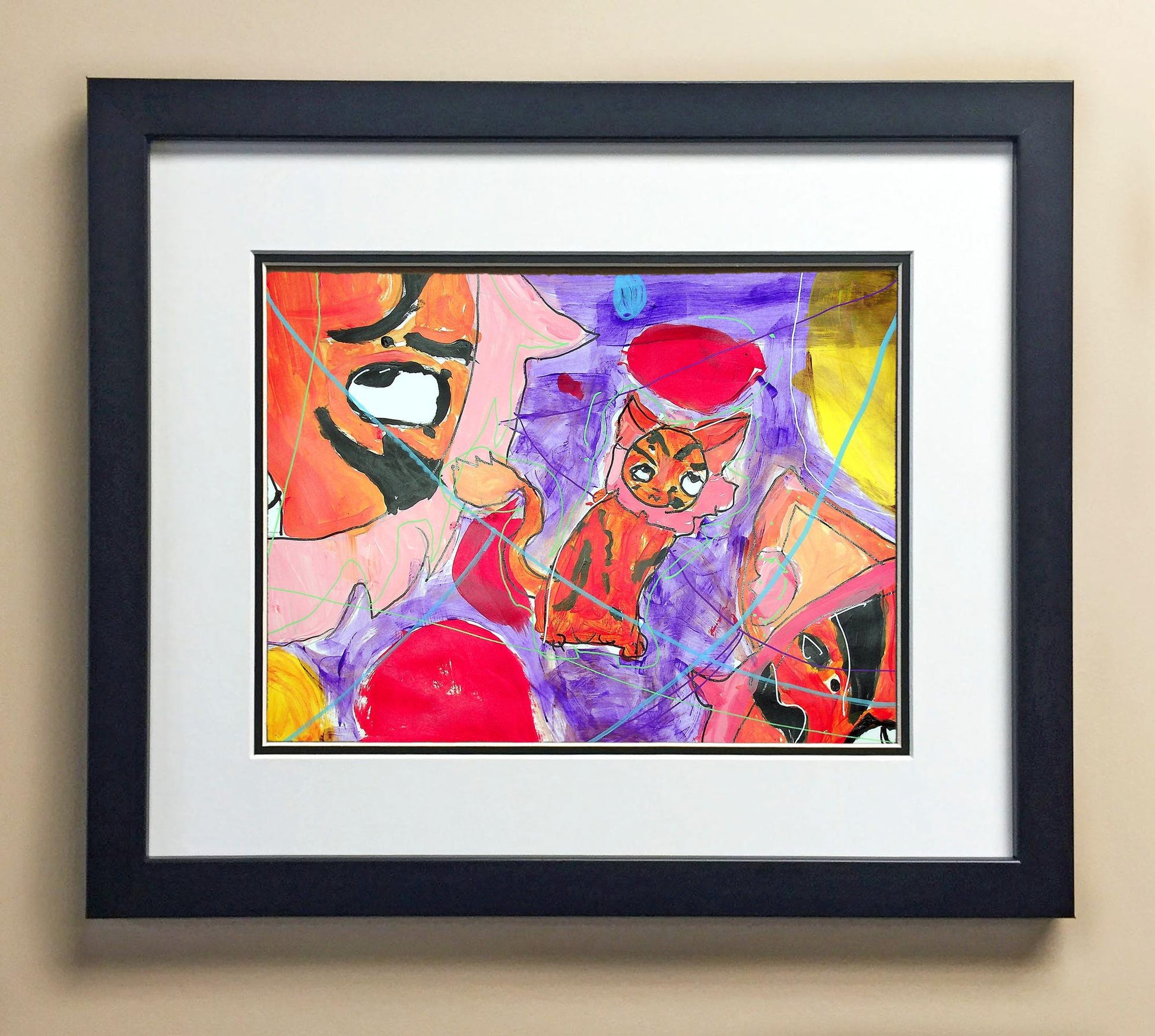 Included with the purchase is the Students Artwork, Frame, double matboard, shatter proof plexiglass, and a ready to hang backerboard with turnbuttons