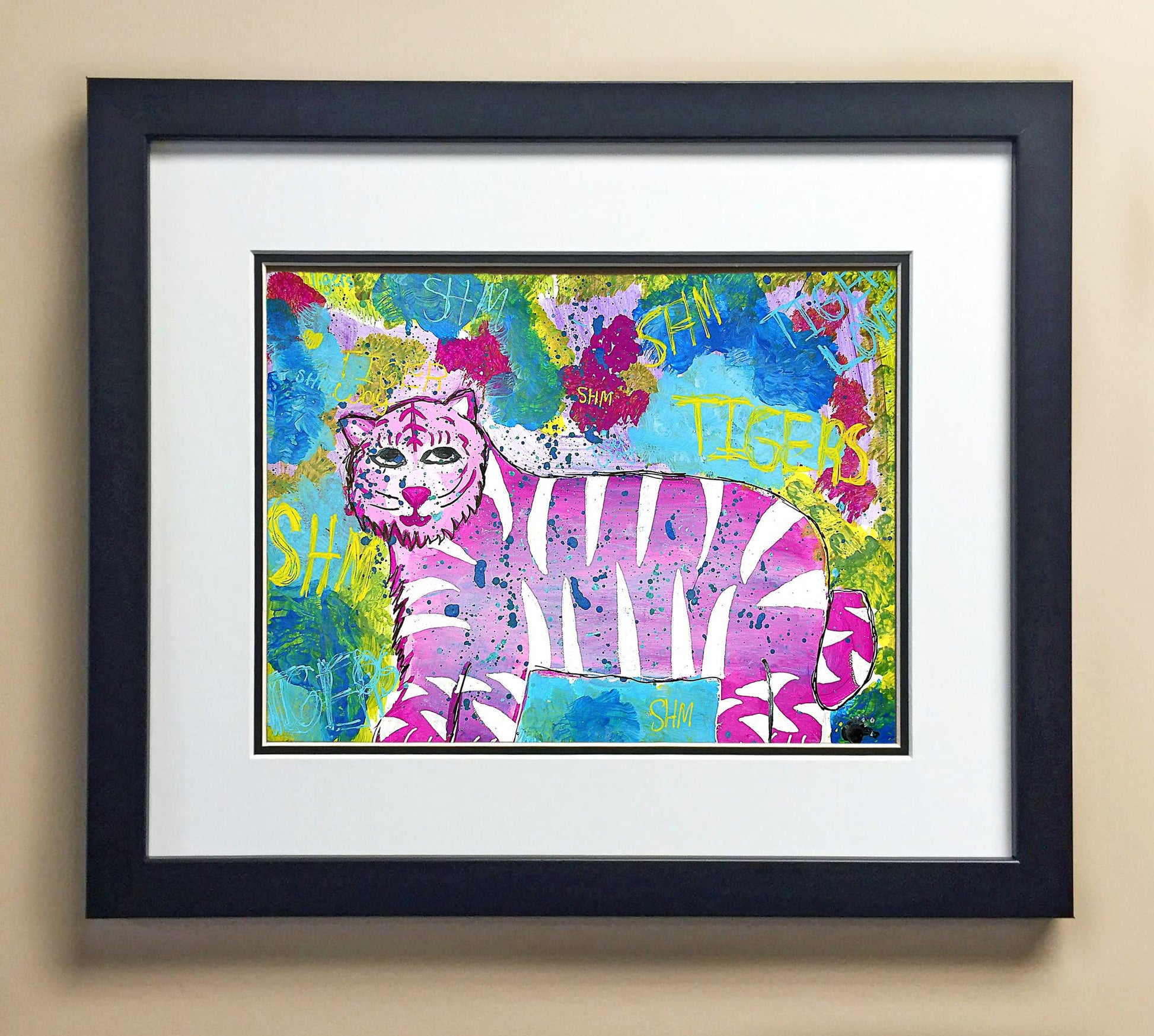 Included with the purchase is the Students Artwork, Frame, double matboard, shatter proof plexiglass, and a ready to hang backerboard with turnbuttons