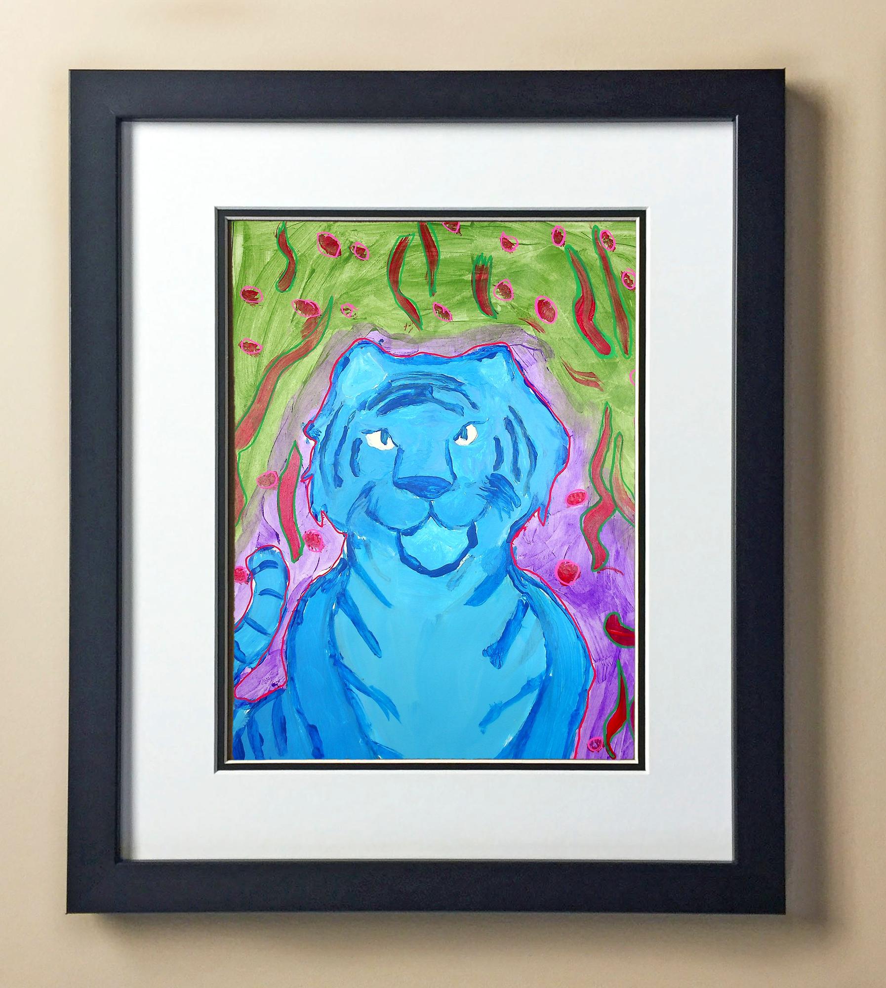 Included with the purchase is the Students Artwork, Frame, double matboard, shatter proof plexiglass, and a ready to hang backerboard with turnbuttons