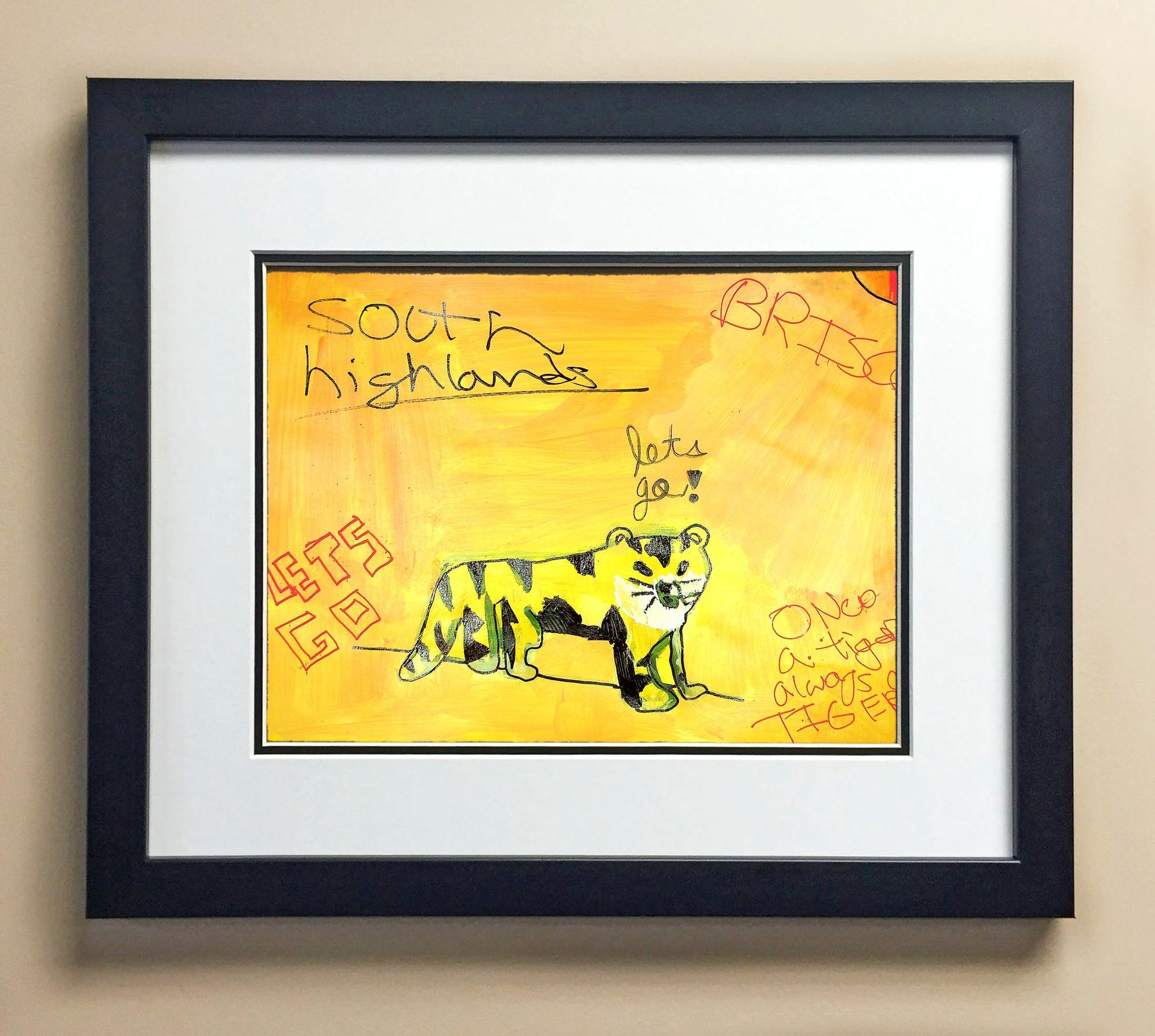 Included with the purchase is the Students Artwork, Frame, double matboard, shatter proof plexiglass, and a ready to hang backerboard with turnbuttons