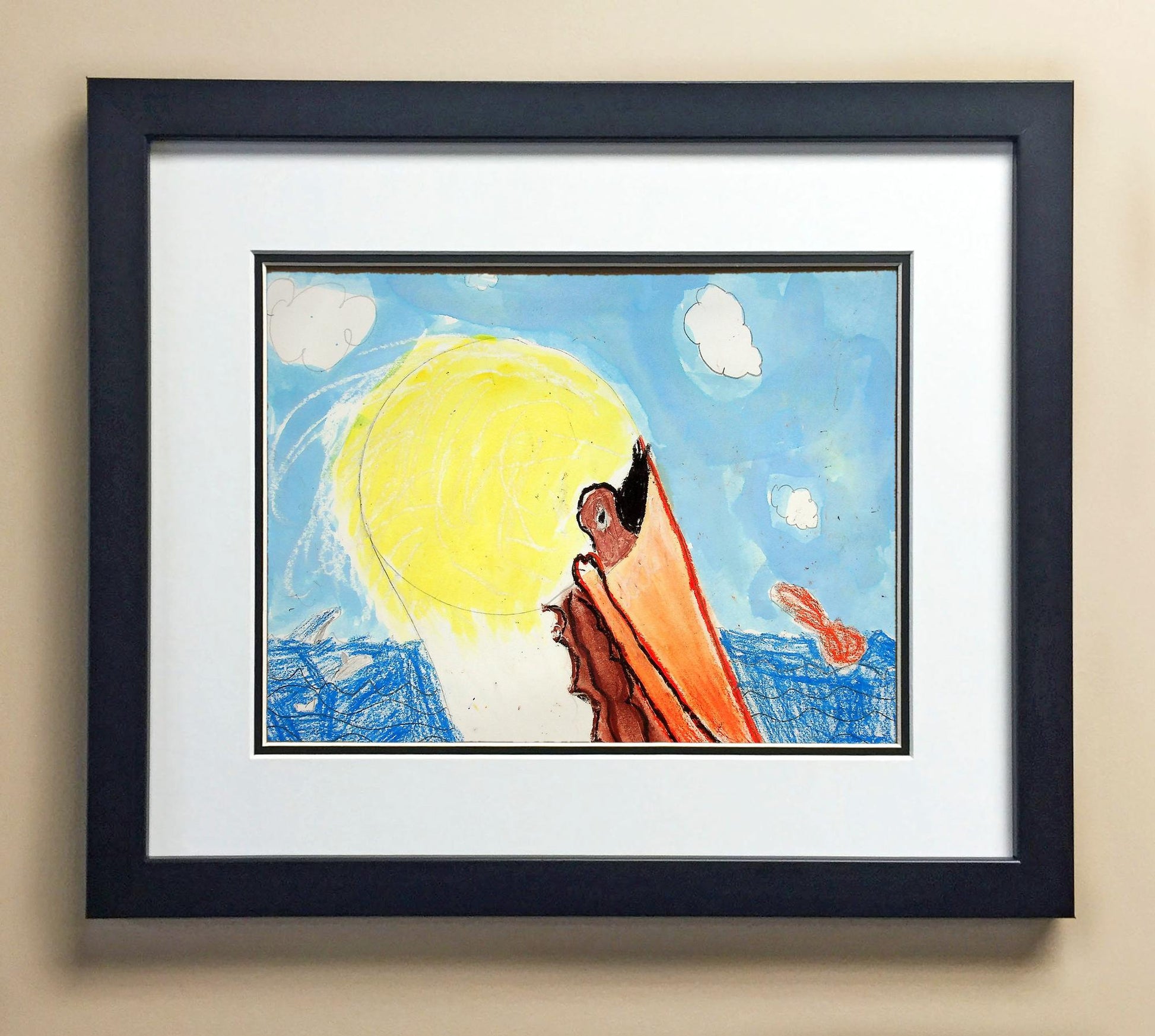 Included with the purchase is the Students Artwork, Frame, double matboard, shatter proof plexiglass, and a ready to hang backerboard with turnbuttons