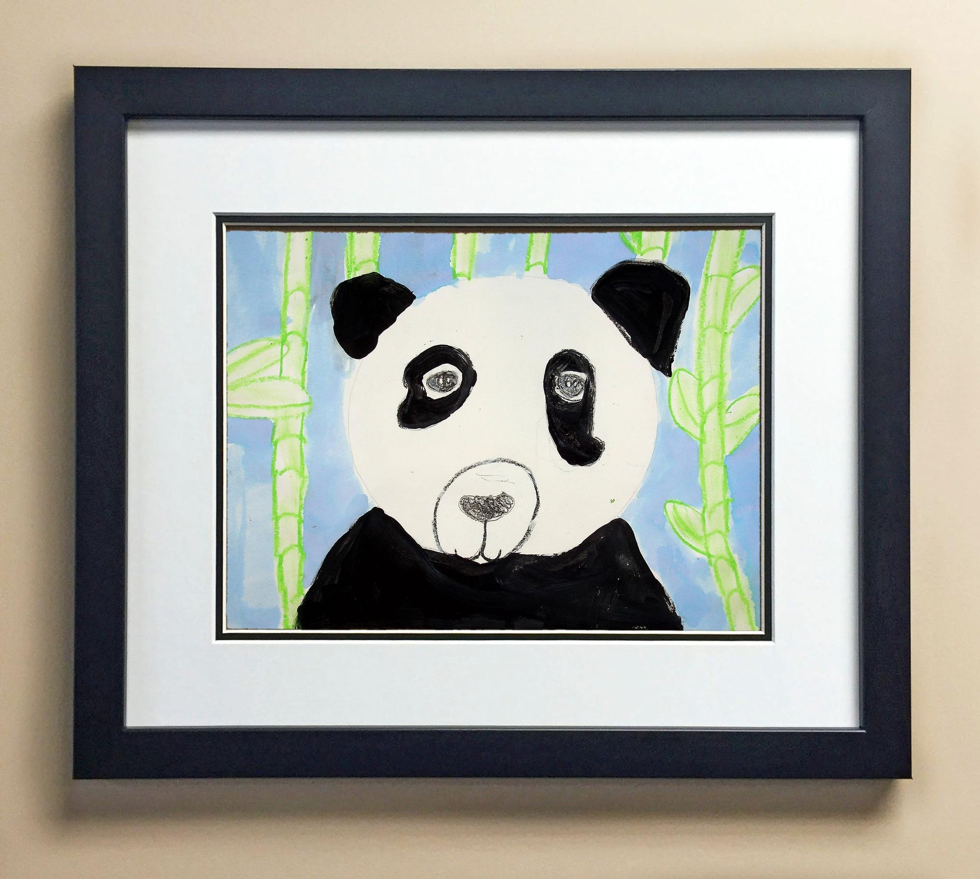 Included with the purchase is the Students Artwork, Frame, double matboard, shatter proof plexiglass, and a ready to hang backerboard with turnbuttons