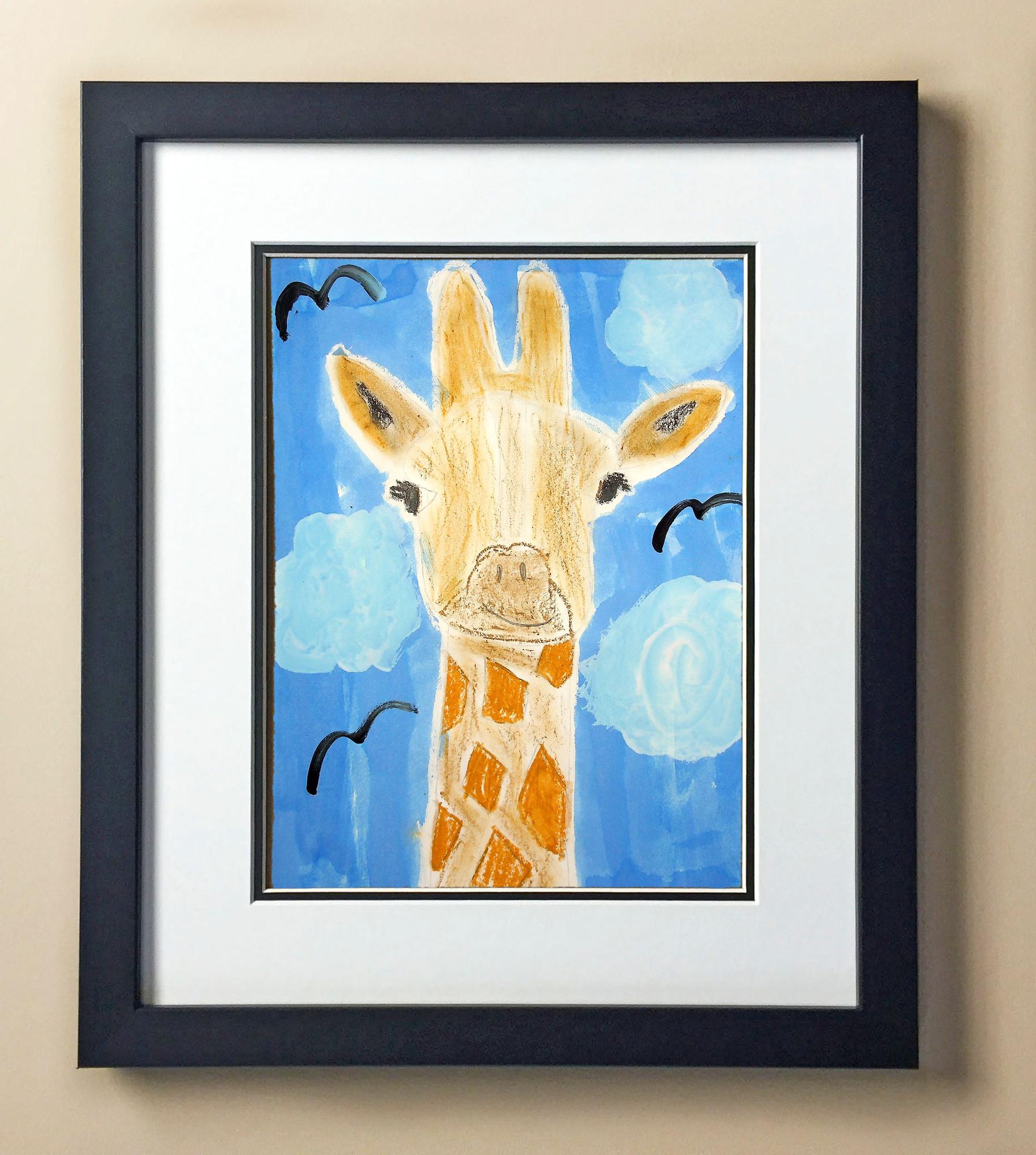 Included with the purchase is the Students Artwork, Frame, double matboard, shatter proof plexiglass, and a ready to hang backerboard with turnbuttons