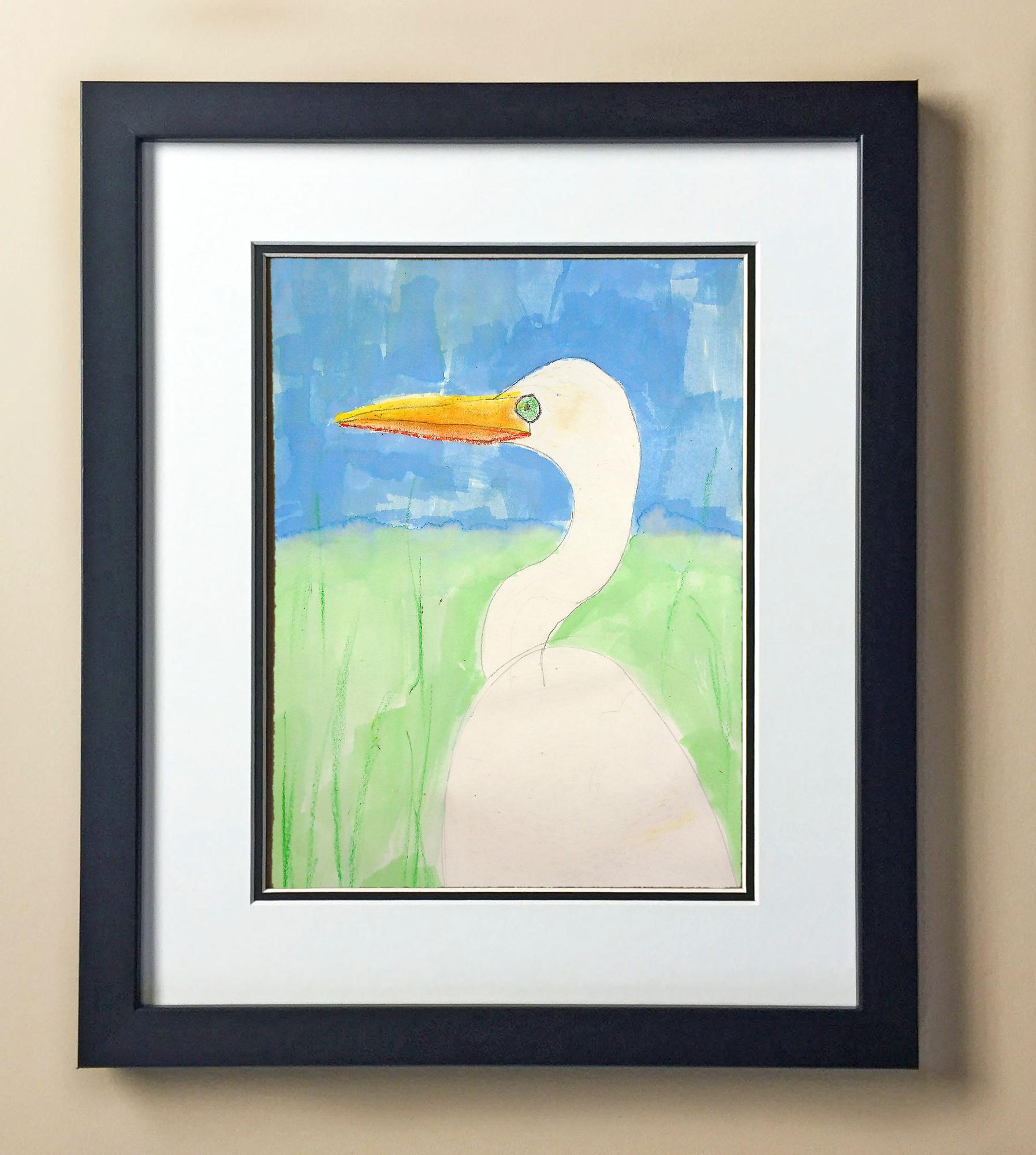 Included with the purchase is the Students Artwork, Frame, double matboard, shatter proof plexiglass, and a ready to hang backerboard with turnbuttons