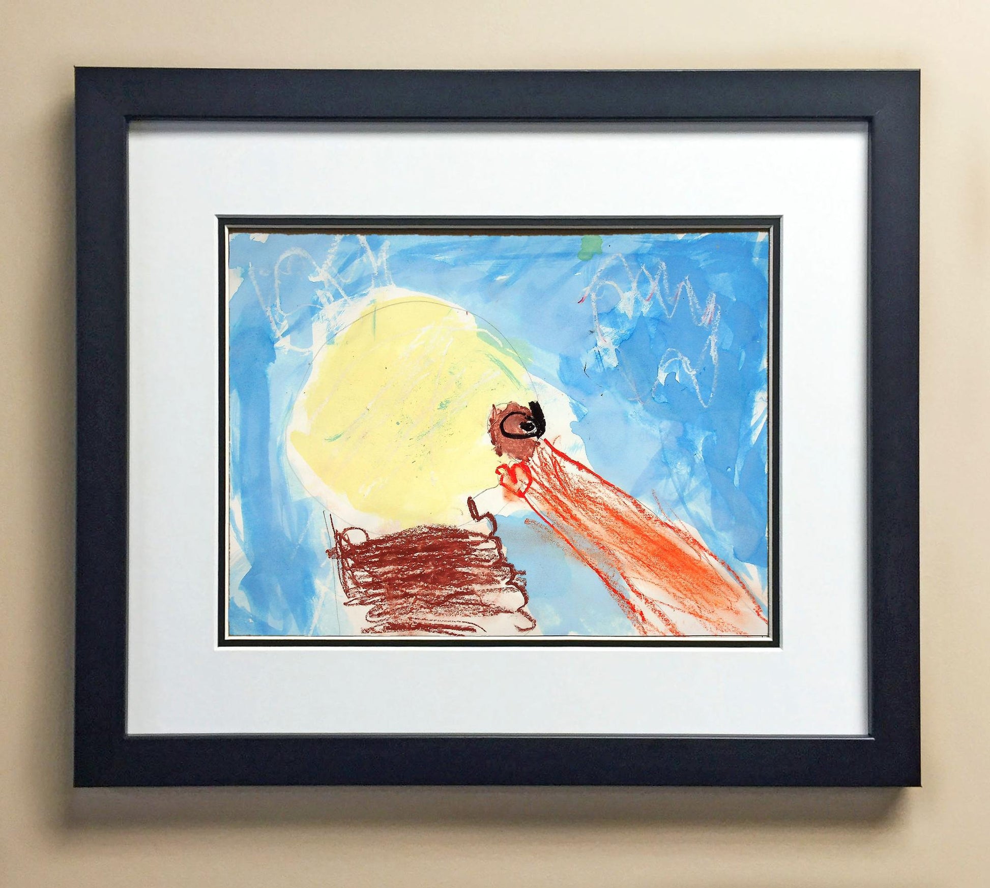 Included with the purchase is the Students Artwork, Frame, double matboard, shatter proof plexiglass, and a ready to hang backerboard with turnbuttons