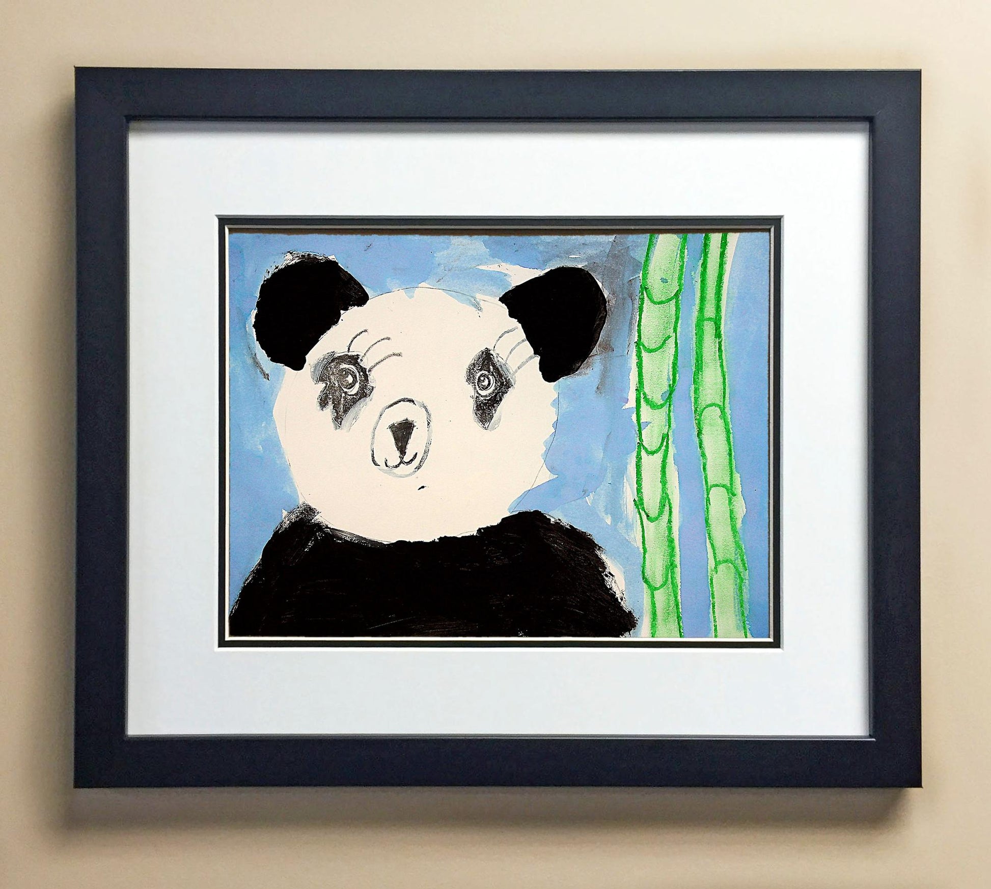 Included with the purchase is the Students Artwork, Frame, double matboard, shatter proof plexiglass, and a ready to hang backerboard with turnbuttons