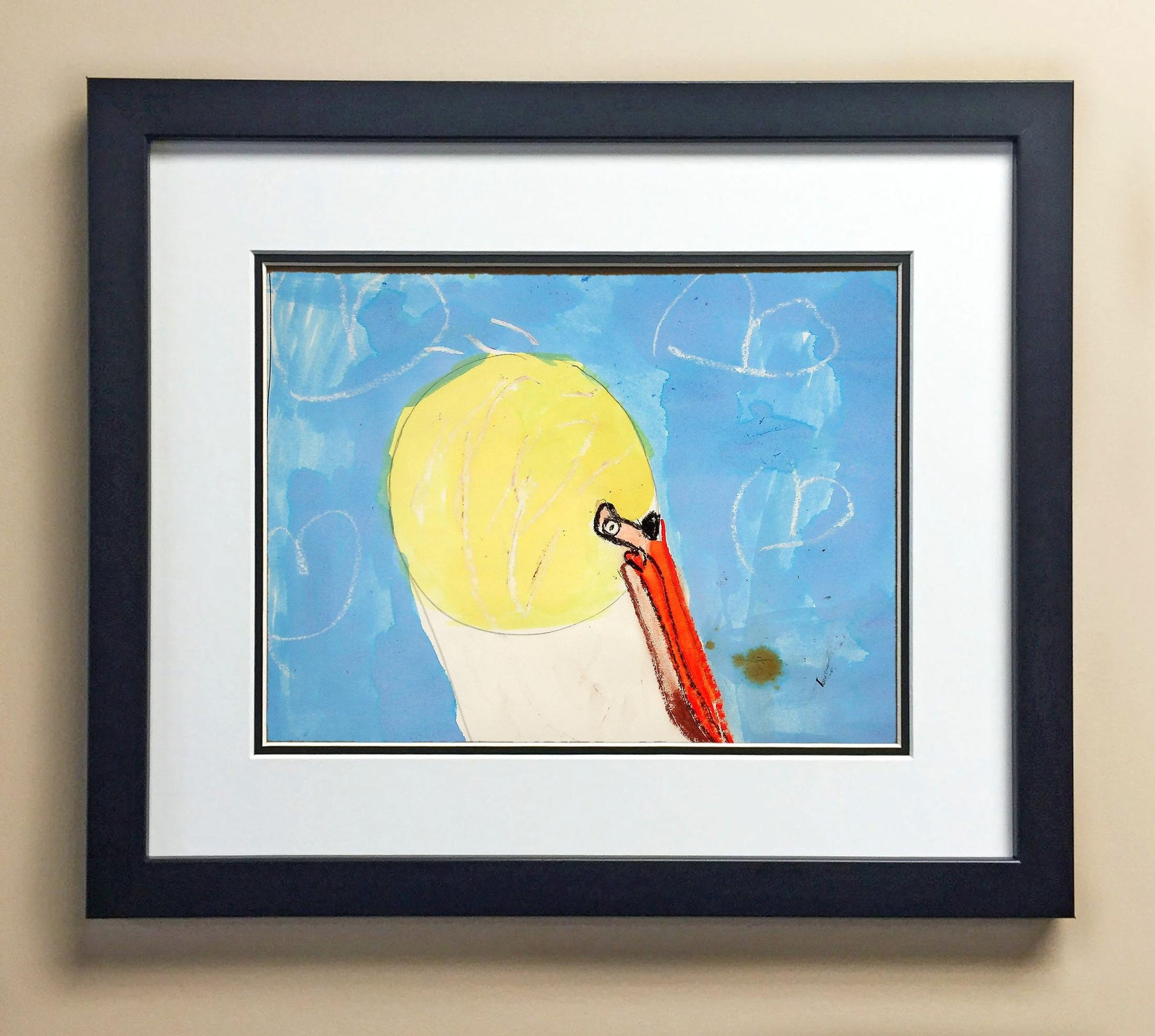 Included with the purchase is the Students Artwork, Frame, double matboard, shatter proof plexiglass, and a ready to hang backerboard with turnbuttons