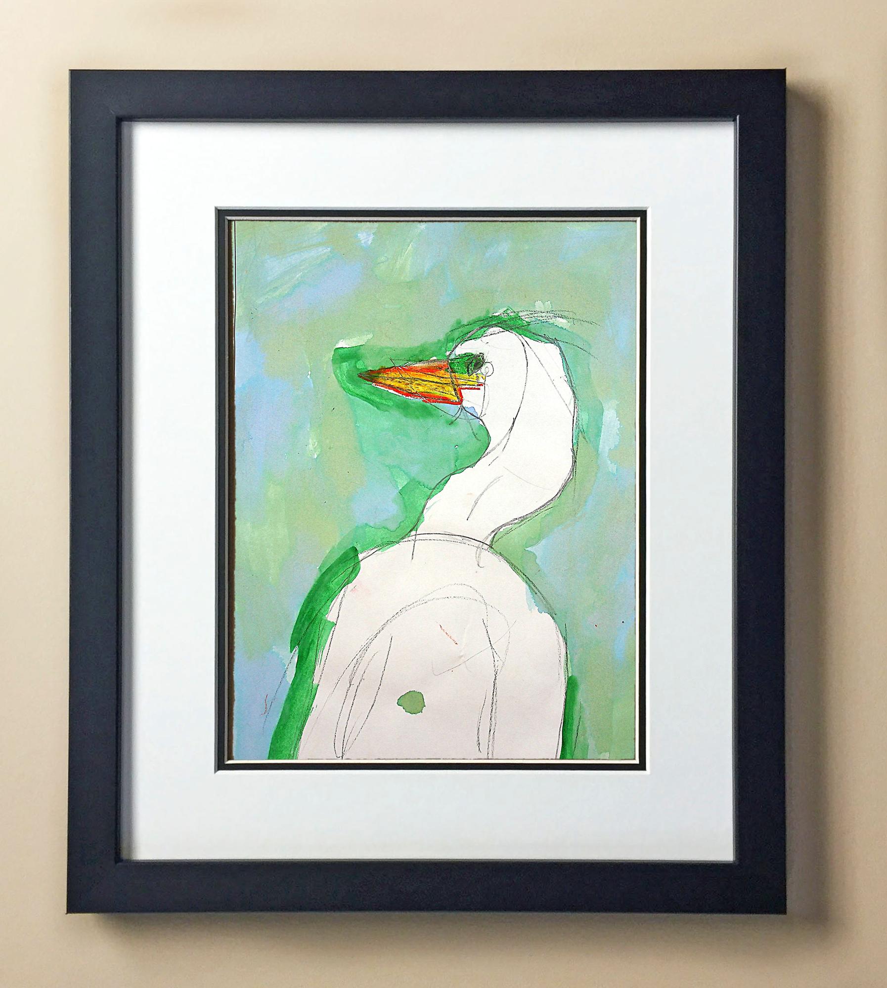 Included with the purchase is the Students Artwork, Frame, double matboard, shatter proof plexiglass, and a ready to hang backerboard with turnbuttons