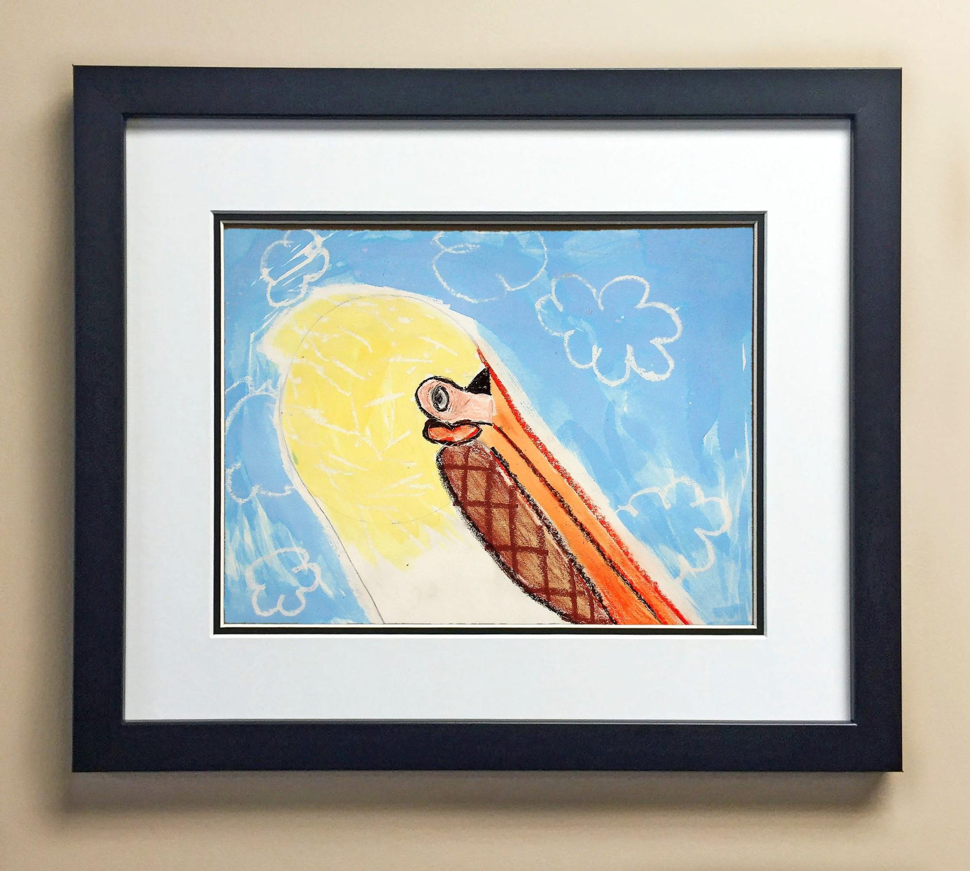 Included with the purchase is the Students Artwork, Frame, double matboard, shatter proof plexiglass, and a ready to hang backerboard with turnbuttons