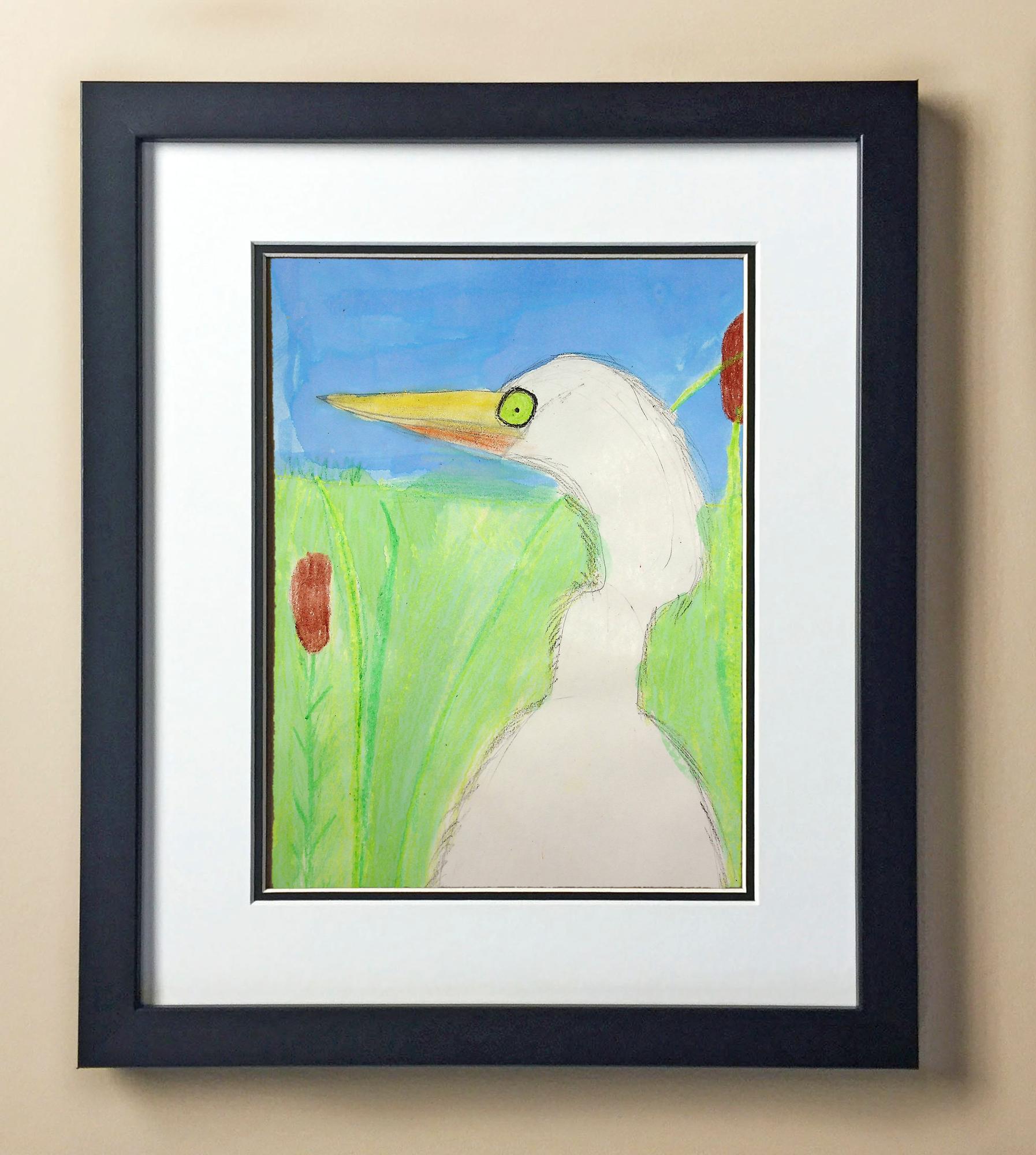 Included with the purchase is the Students Artwork, Frame, double matboard, shatter proof plexiglass, and a ready to hang backerboard with turnbuttons