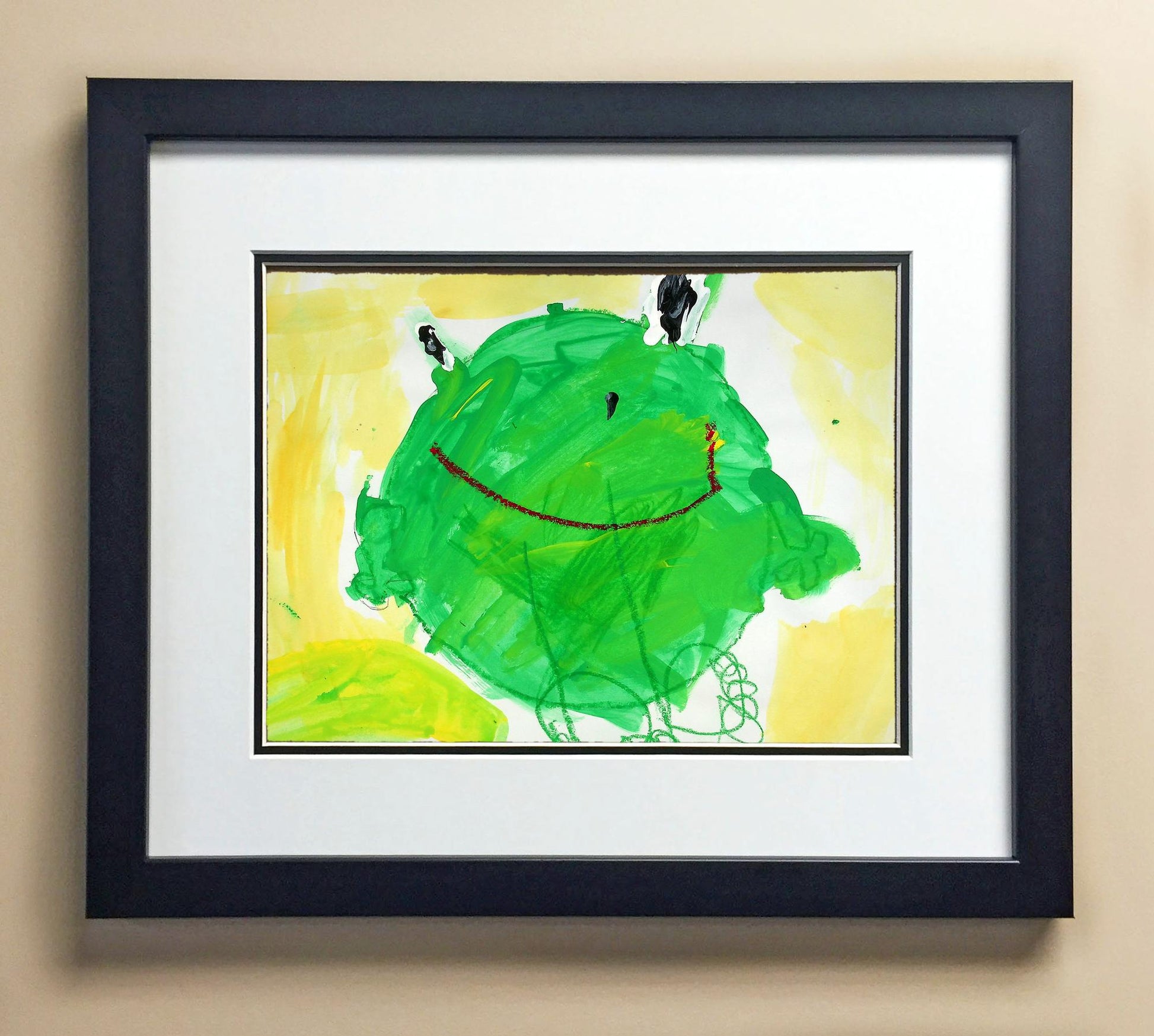 Included with the purchase is the Students Artwork, Frame, double matboard, shatter proof plexiglass, and a ready to hang backerboard with turnbuttons