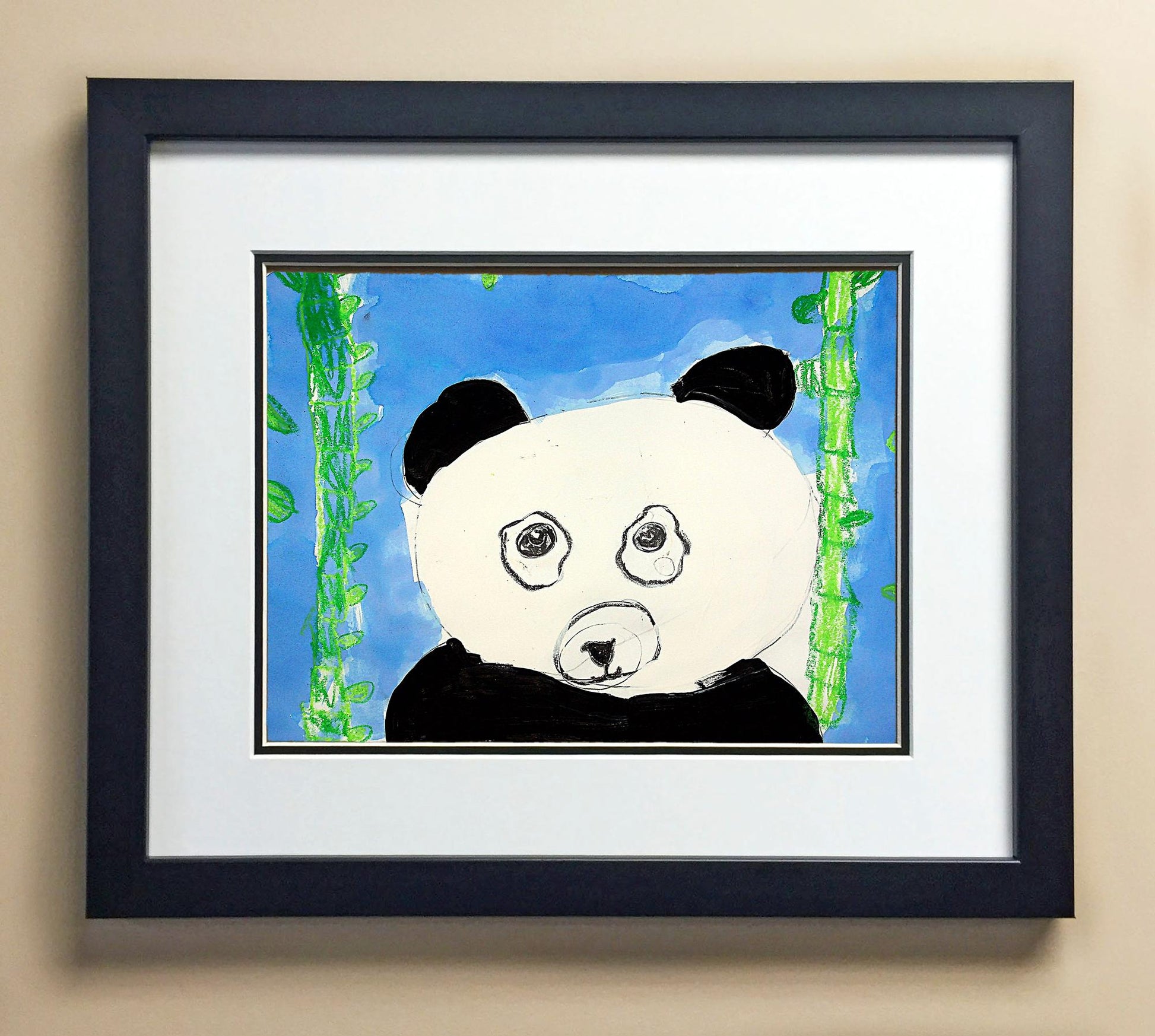 Included with the purchase is the Students Artwork, Frame, double matboard, shatter proof plexiglass, and a ready to hang backerboard with turnbuttons