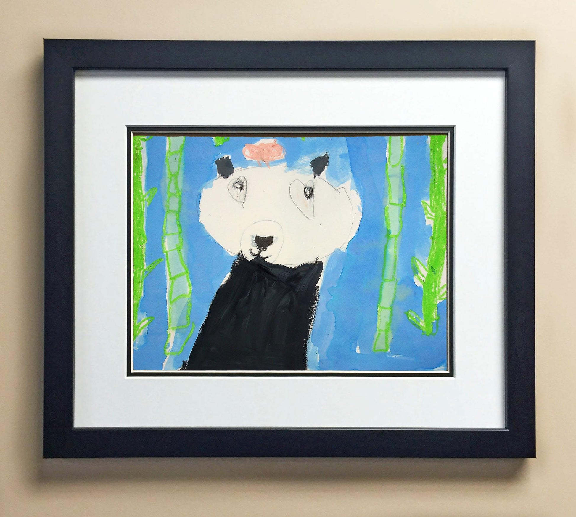 Included with the purchase is the Students Artwork, Frame, double matboard, shatter proof plexiglass, and a ready to hang backerboard with turnbuttons