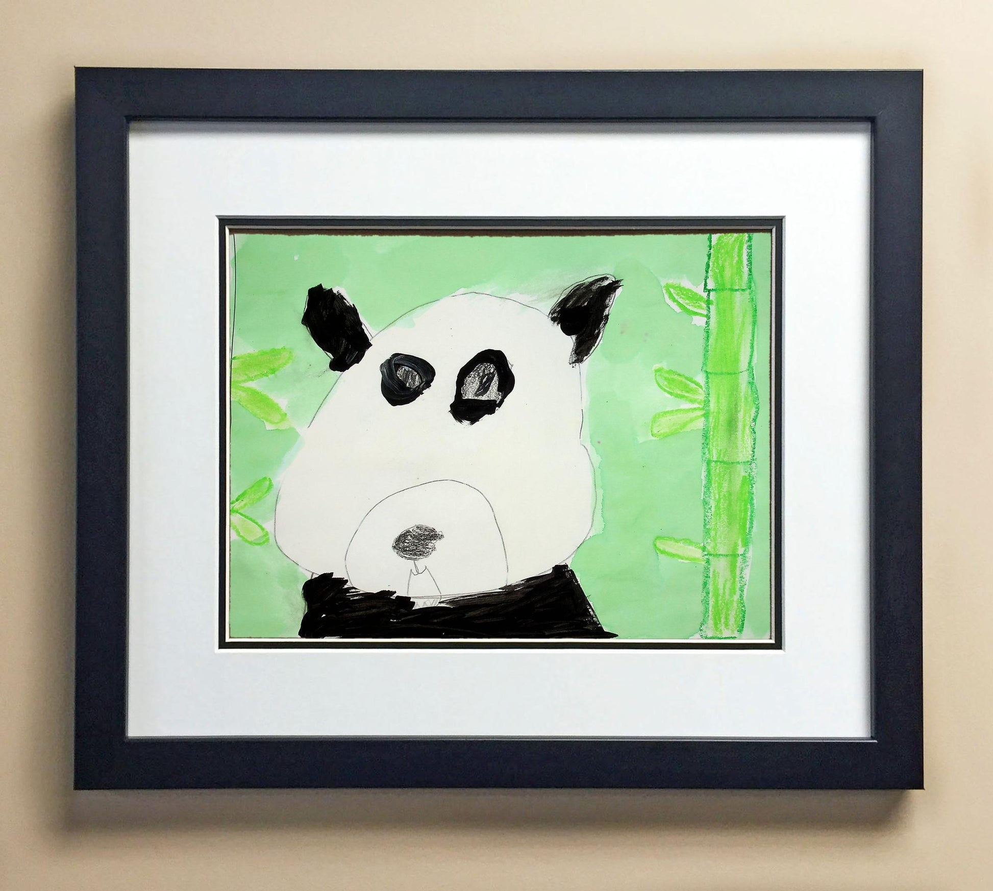 Included with the purchase is the Students Artwork, Frame, double matboard, shatter proof plexiglass, and a ready to hang backerboard with turnbuttons